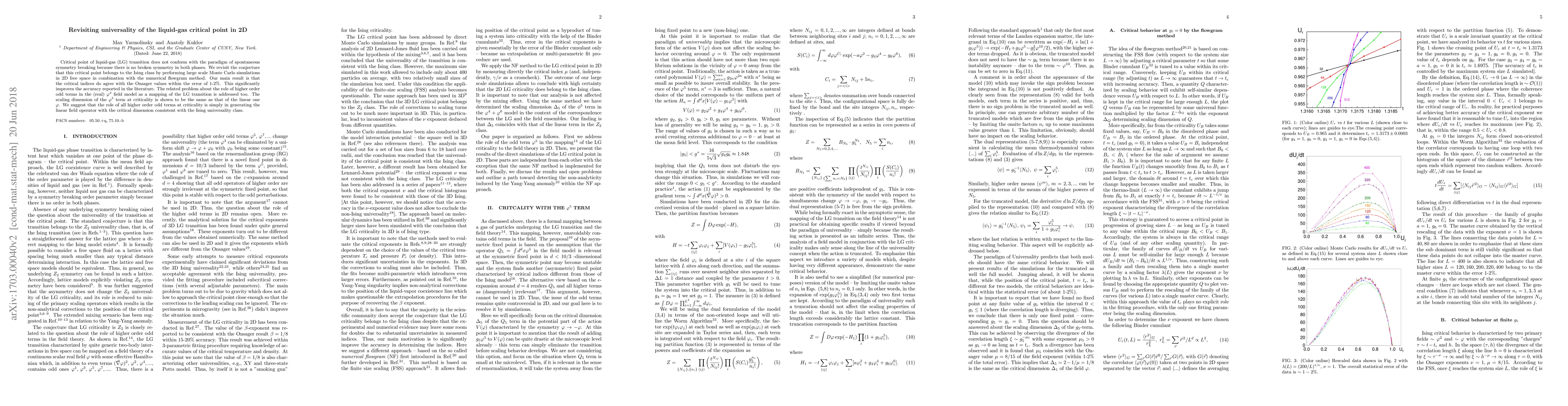 Critical point of liquid-gas (LG) transition does not conform with the paradigm of spontaneous symmetry breaking because there is no broken symmetry in both phases. This stimulated the ongoing debate about the nature of the universality class of the transition -- lasting since the creation of the theory of scaling. We revisit the conjecture that the LG criticality is that of the Ising model. Large scale Monte Carlo simulations of the LG criticality in 2D free space in combination with the numerical flowgram method give the critical indices agreeing with the Onsager values within the error of 1\%. The related problem about the role of higher order odd terms in the (real) $\varphi^4$ field model is addressed too. The scaling dimension of the $\varphi^5$ term at criticality is shown to be the same as of the linear one $\varphi$. We suggest that the role of all higher order odd terms is simply in generating the linear field operator at the criticality.