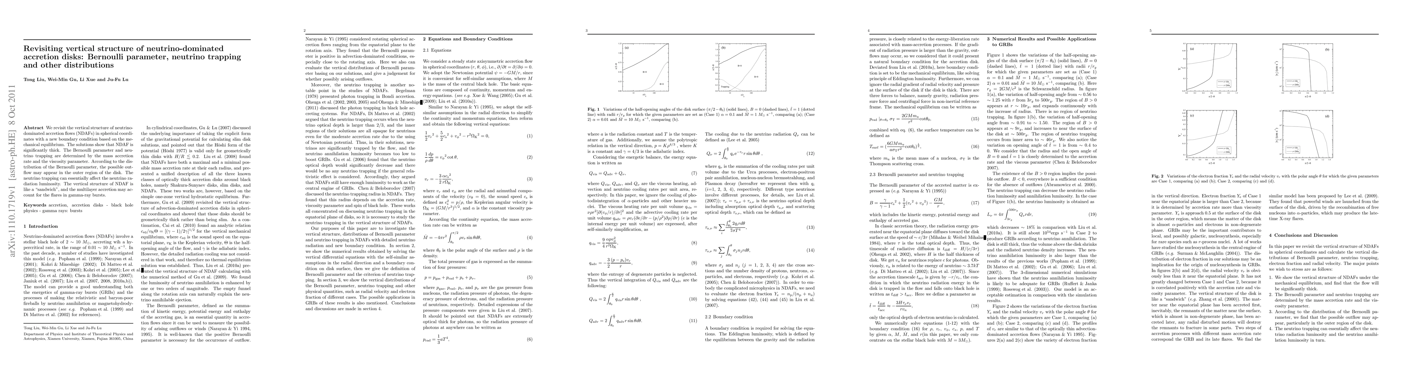 This paper examines the vertical structure of neutrino-dominated accretion flows (NDAFs), revealing that NDAFs are significantly thick. The Bernoulli parameter, neutrino trapping, and their dependence on mass accretion and viscosity are analyzed, suggesting possible outflows in the outer disk regions and a "sandwich"-like vertical structure that may explain flares in gamma-ray bursts.