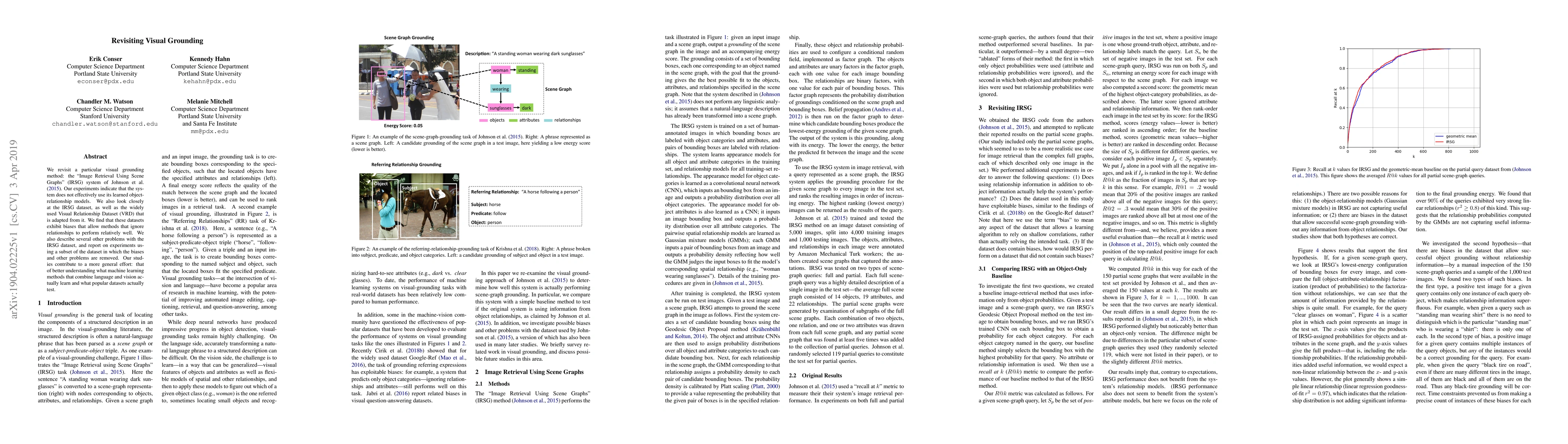We revisit a particular visual grounding method: the "Image Retrieval Using Scene Graphs" (IRSG) system of Johnson et al. (2015). Our experiments indicate that the system does not effectively use its learned object-relationship models. We also look closely at the IRSG dataset, as well as the widely used Visual Relationship Dataset (VRD) that is adapted from it. We find that these datasets exhibit biases that allow methods that ignore relationships to perform relatively well. We also describe several other problems with the IRSG dataset, and report on experiments using a subset of the dataset in which the biases and other problems are removed. Our studies contribute to a more general effort: that of better understanding what machine learning methods that combine language and vision actually learn and what popular datasets actually test.