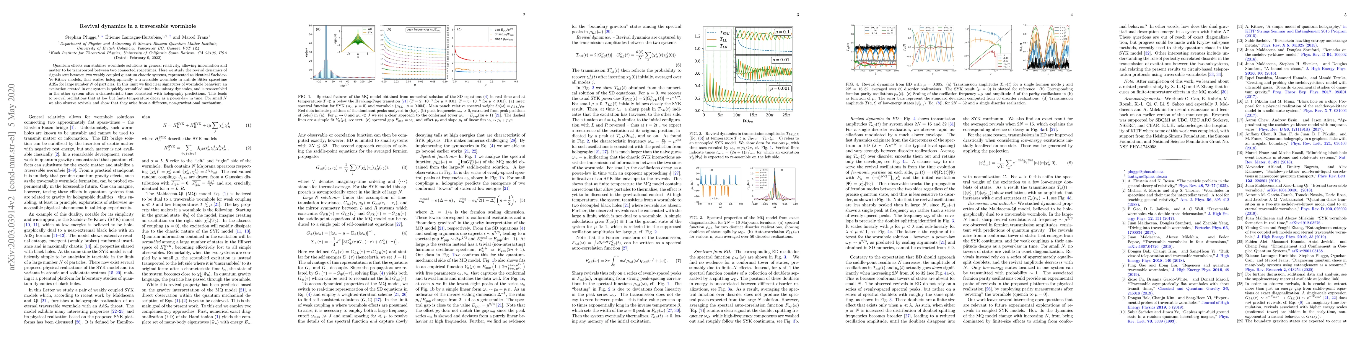 This paper investigates the revival dynamics in a traversable wormhole modeled by quantum chaotic systems, finding that signals sent between them exhibit revival oscillations consistent with holographic predictions, while smaller systems show revivals due to non-gravitational mechanisms.