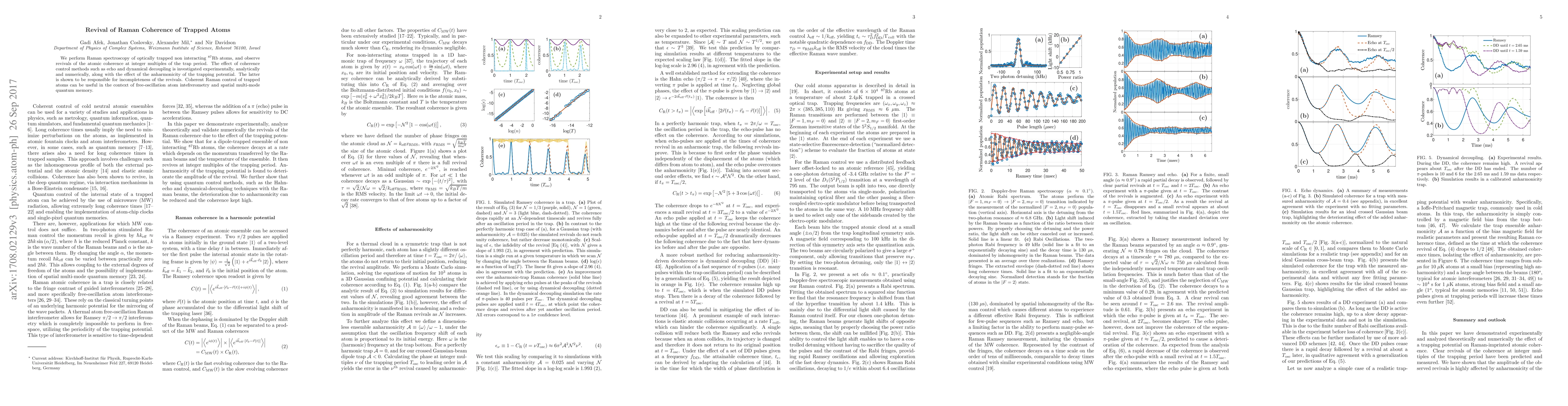 This study investigates Raman spectroscopy on optically trapped, non-interacting rubidium atoms, revealing coherence revivals at trap period multiples. The research explores coherence control via echo and decoupling techniques, finding that anharmonicity in the trapping potential limits revival completeness, with potential applications in free-oscillation atom interferometry and quantum memory.