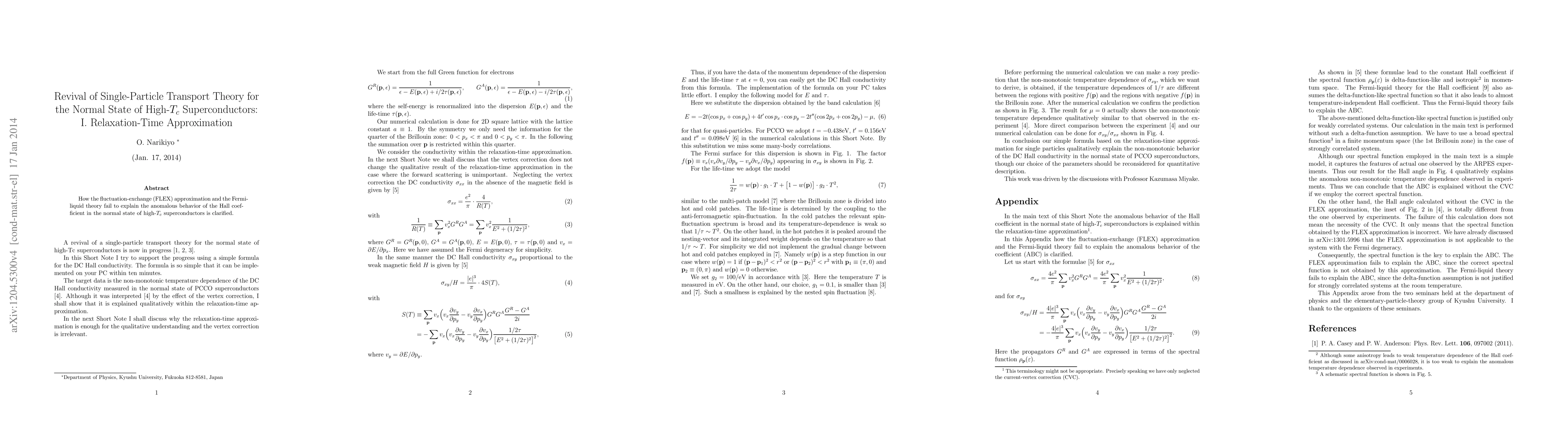 This paper elucidates the limitations of the FLEX approximation and Fermi-liquid theory in explaining the abnormal Hall coefficient behavior in the normal state of high-Tc superconductors, advocating for a revival of single-particle transport theory.