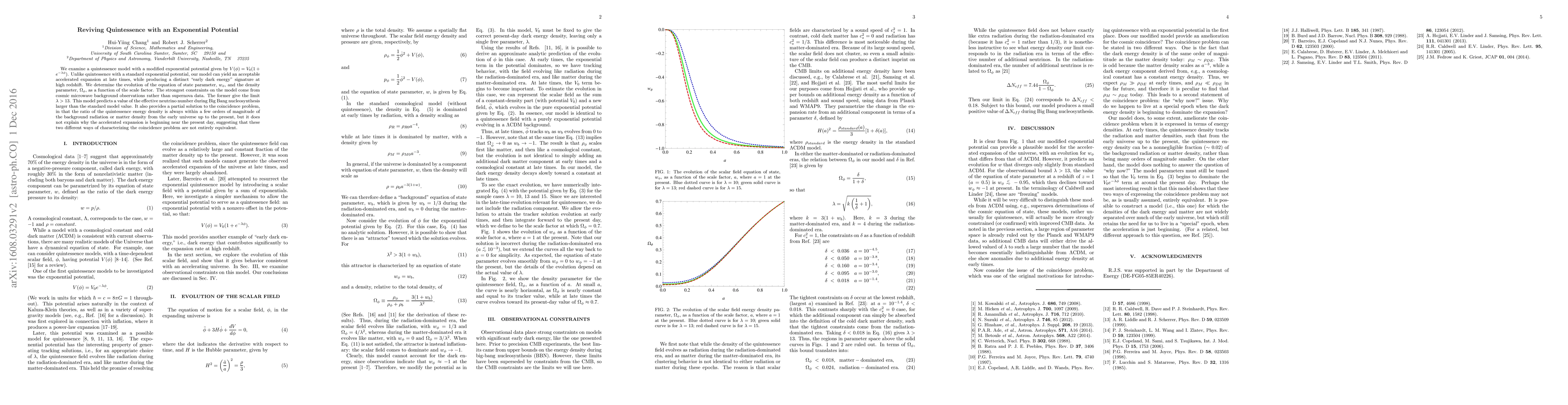 This paper explores a quintessence model with a modified exponential potential that can produce accelerated expansion and an early dark energy signature, with constraints mainly from cosmic microwave background observations. The model partially resolves the coincidence problem but does not explain the timing of the current accelerated expansion.