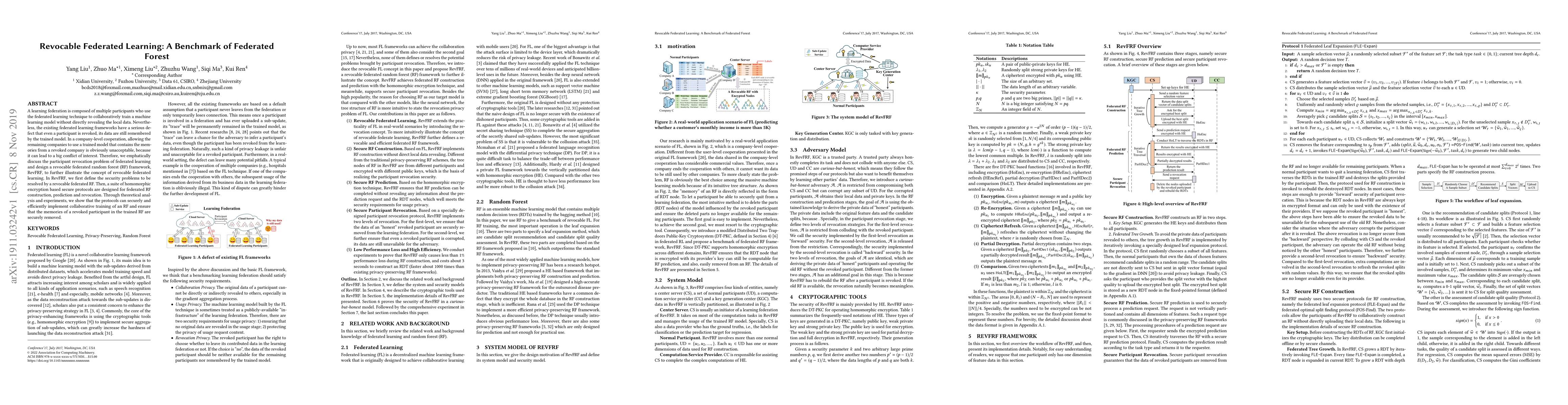 This paper introduces a revocable federated learning framework, RevFRF, designed to address the issue of participant data retention in traditional federated learning. It proposes secure protocols based on homomorphic encryption to enable the removal of a participant's data from the trained model upon revocation, ensuring data privacy and conflict of interest prevention.