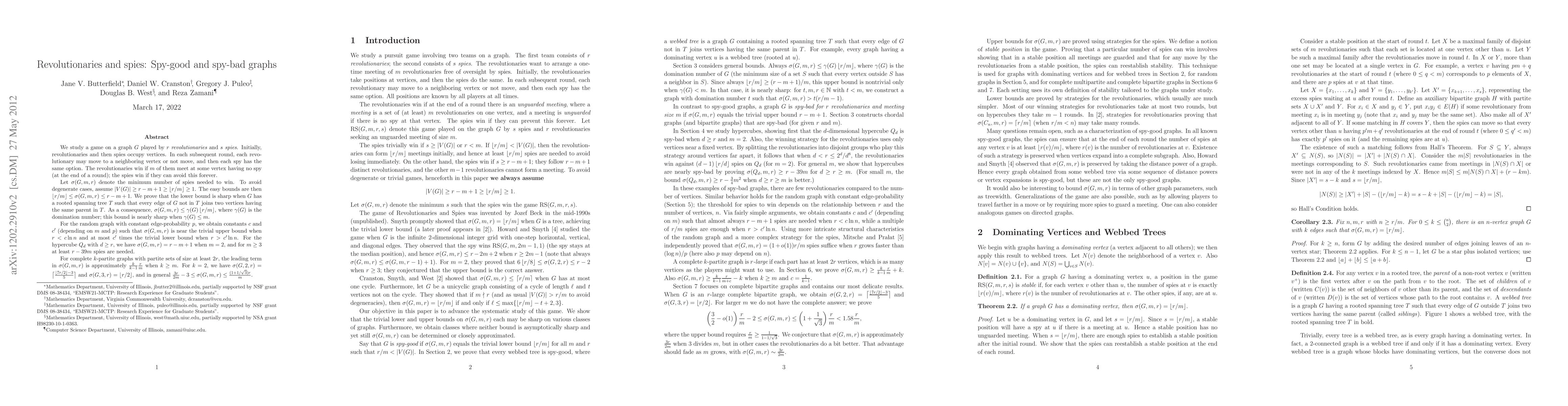 {\it spies}. Initially, revolutionaries and then spies occupy vertices. In each