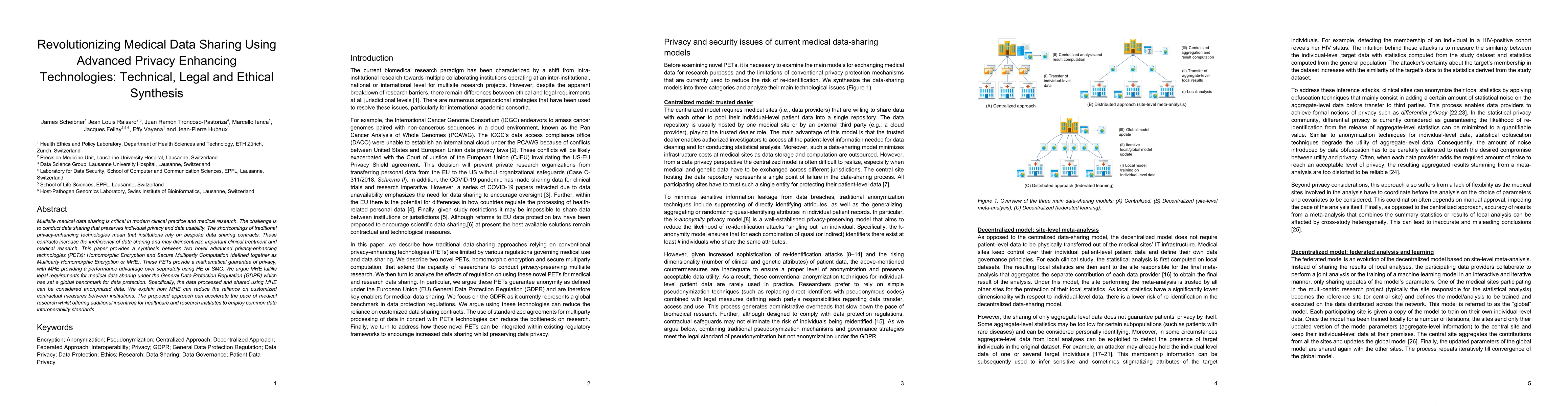 This paper synthesizes advanced privacy-enhancing technologies, specifically Multiparty Homomorphic Encryption (MHE), to revolutionize secure medical data sharing. It argues that MHE can fulfill GDPR requirements, reduce reliance on bespoke contracts, and accelerate medical research by promoting data interoperability.