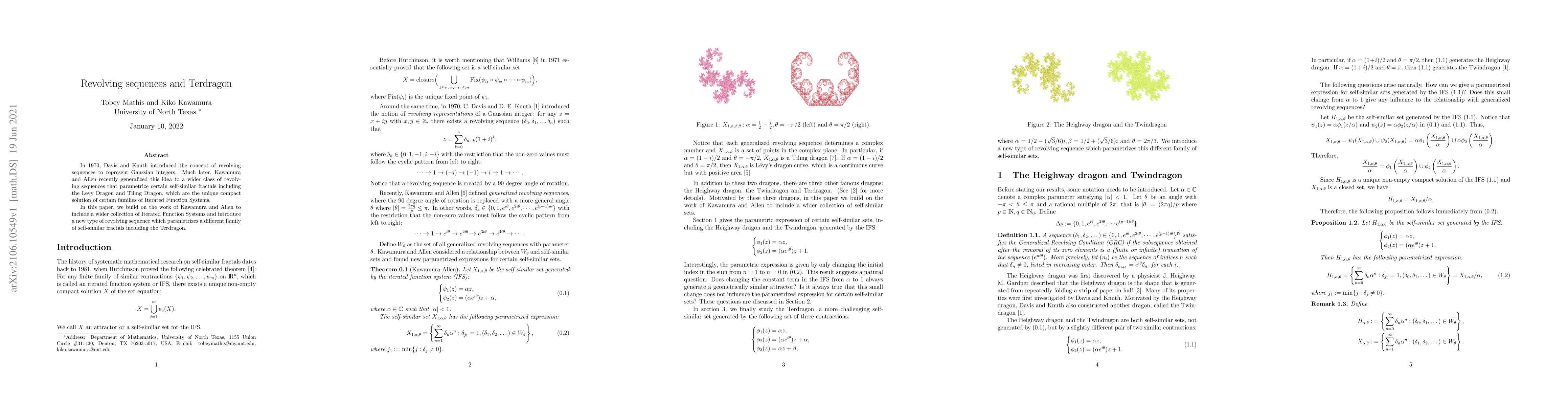 In 1970, Davis and Knuth introduced the concept of revolving sequences to represent Gaussian integers. Much later, Kawamura and Allen recently generalized this idea to a wider class of revolving sequences that parametrize certain self-similar fractals including the Levy Dragon and Tiling Dragon, which are the unique compact solution of certain families of Iterated Function Systems. In this paper, we build on the work of Kawamura and Allen to include a wider collection of Iterated Function Systems and introduce a new type of revolving sequence which parametrizes a different family of self-similar fractals including the Terdragon.