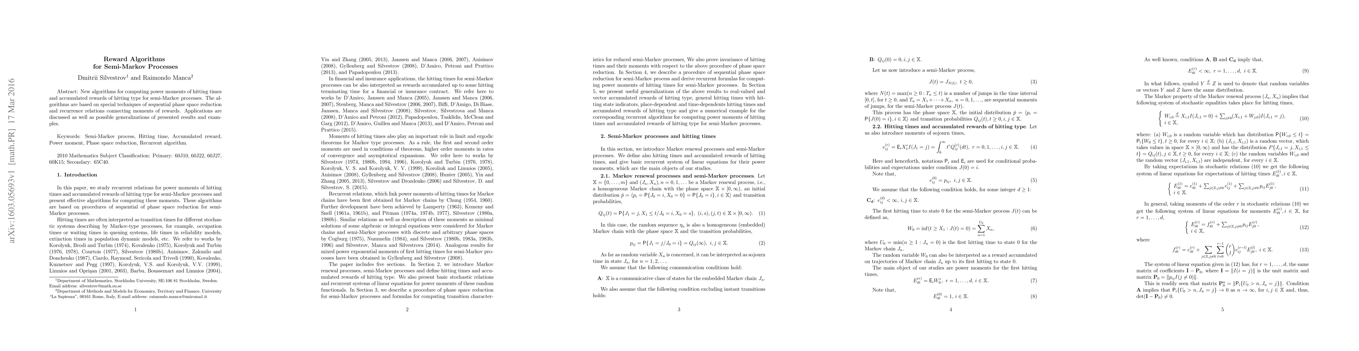 This paper introduces novel algorithms for calculating power moments of hitting times and accumulated rewards in semi-Markov processes, employing sequential phase space reduction and recurrence relations. The study also explores applications, potential generalizations, and presents experimental results.