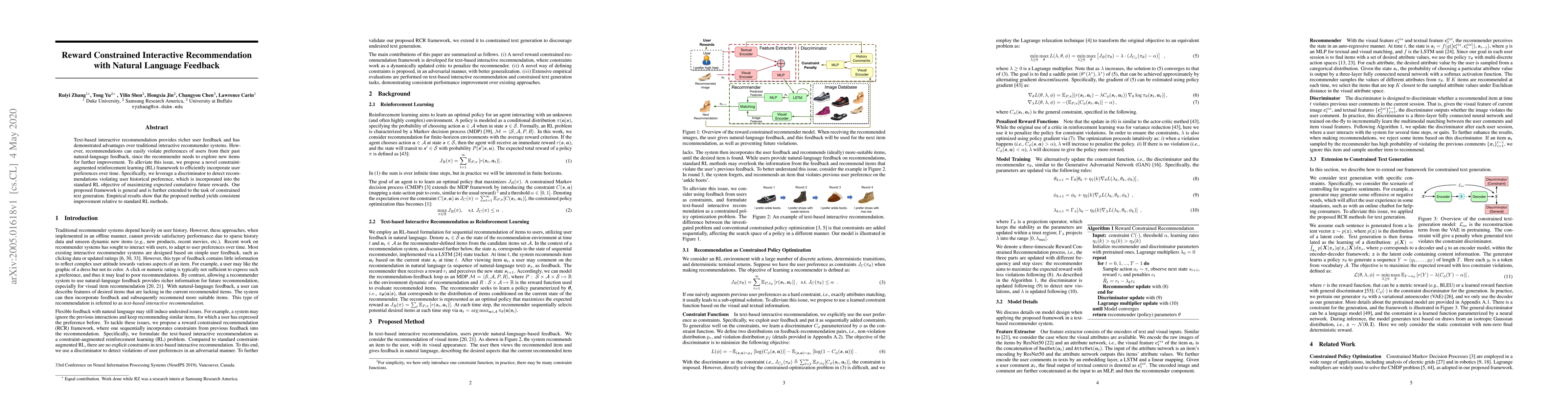 This paper proposes a constraint-augmented reinforcement learning framework to enhance text-based interactive recommendation systems by incorporating user preferences from natural-language feedback. The method uses a discriminator to detect and penalize recommendations that violate historical preferences, improving recommendation accuracy and user satisfaction.