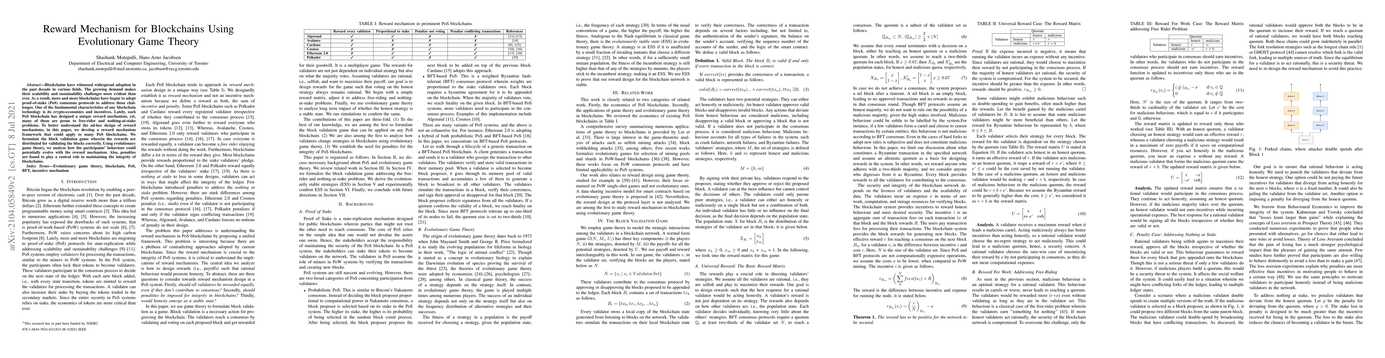 This paper develops a framework for blockchain reward mechanisms using evolutionary game theory to analyze consensus protocol participants' behavior. It highlights the importance of penalties in mitigating free-rider and nothing-at-stake problems in proof-of-stake blockchains.