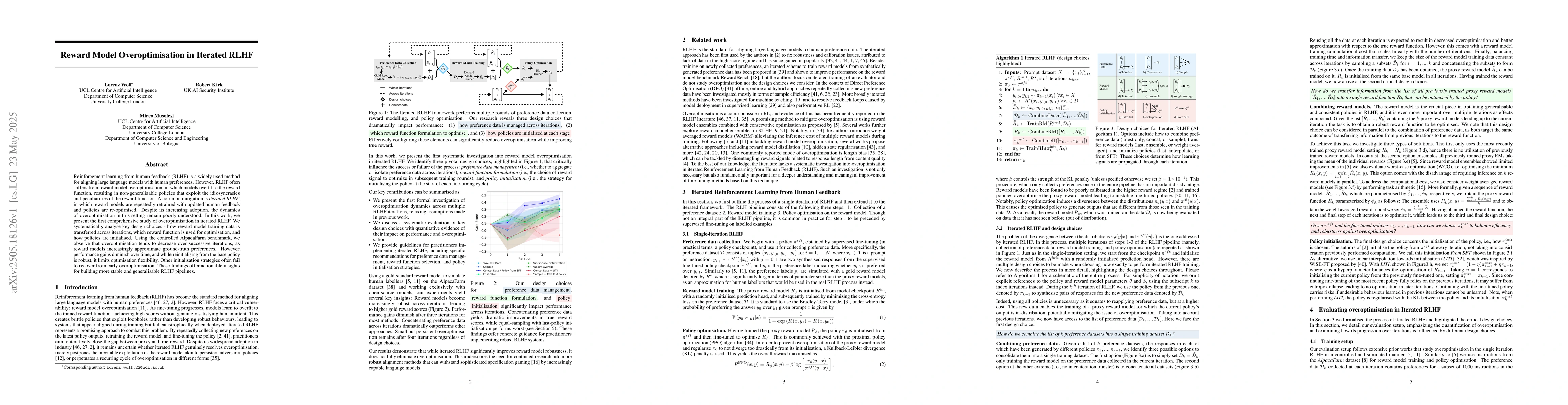 A comprehensive study of overoptimisation dynamics in iterated RLHF, identifying critical design choices and their impact on model generalisability.