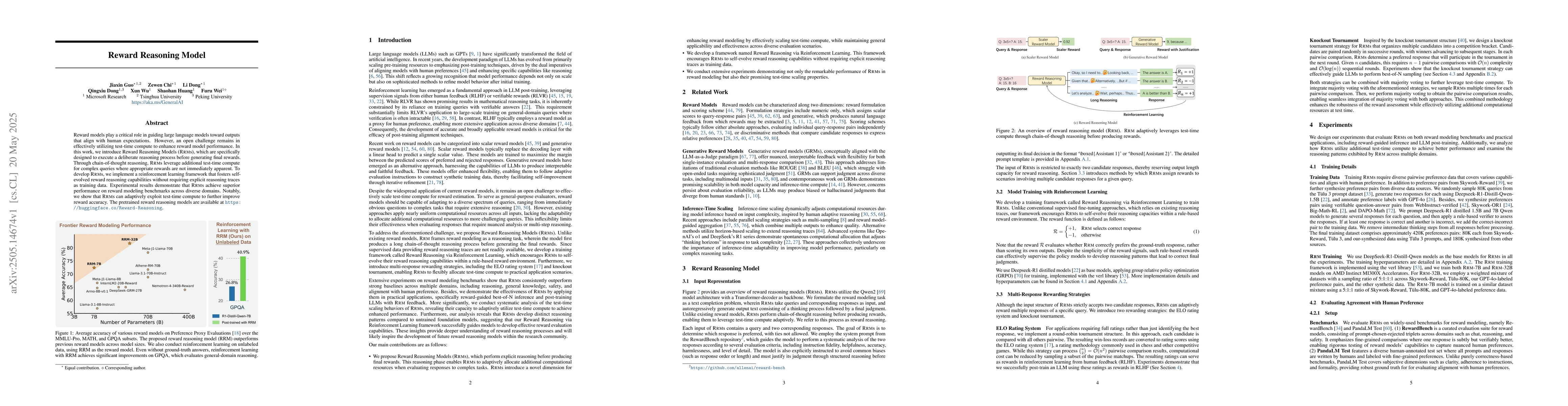 Reward Reasoning Models improve large language model performance by leveraging additional test-time compute for complex queries, achieving superior results across diverse domains.