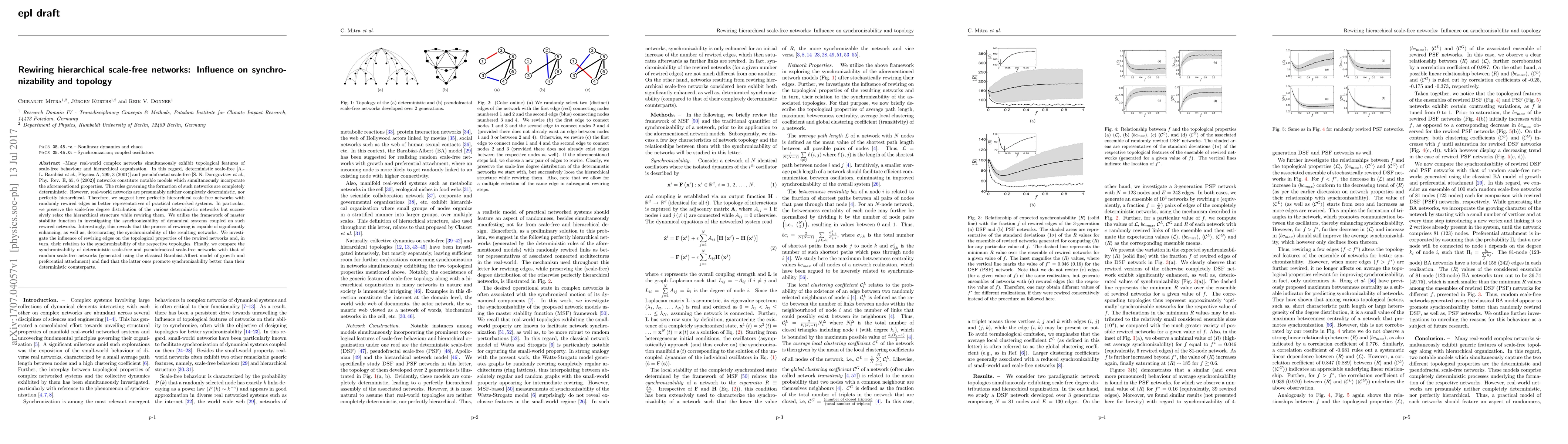 This paper explores the impact of rewiring edges in hierarchical scale-free networks on their synchronizability and topology, demonstrating that rewiring can either enhance or deteriorate synchronizability. It finds that random scale-free networks promote better synchronizability compared to their deterministic counterparts.