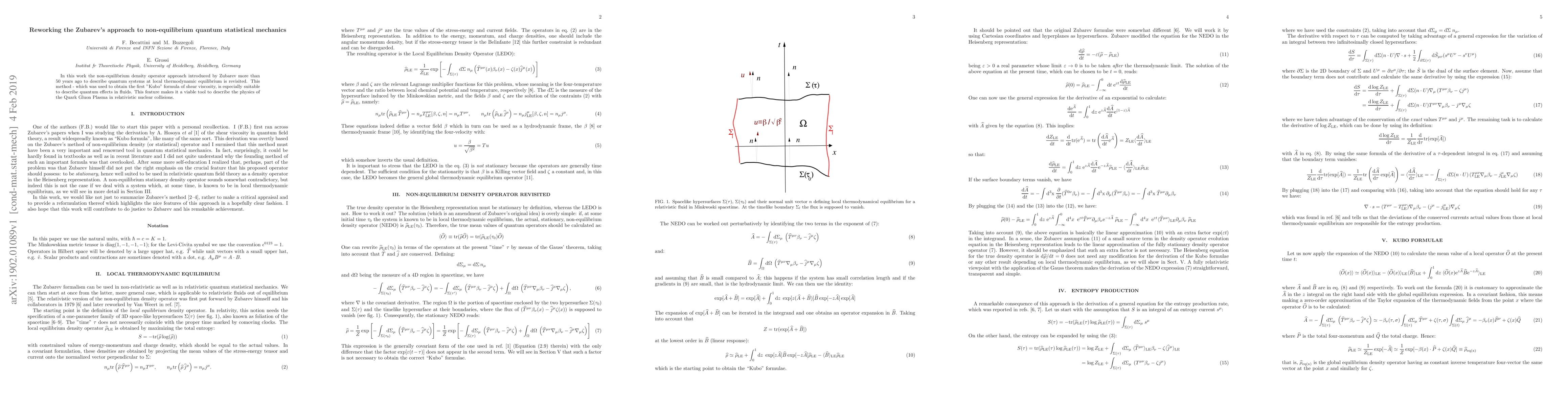 Researchers revisit Zubarev's method for describing quantum systems in non-equilibrium states, a technique used to understand the Quark Gluon Plasma in nuclear collisions.