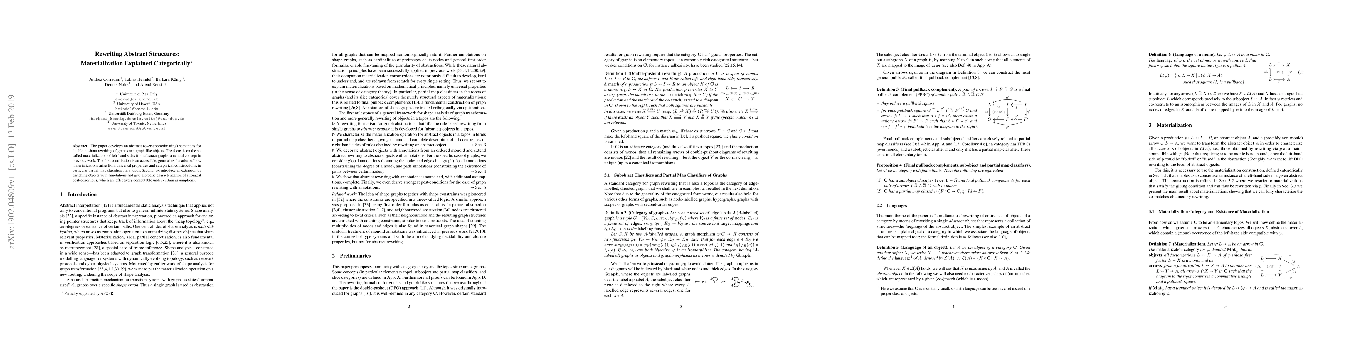 This paper develops an abstract semantics for double-pushout rewriting of graphs, explaining how materializations arise from universal properties in a topos, and characterizing strongest post-conditions for enriched objects.