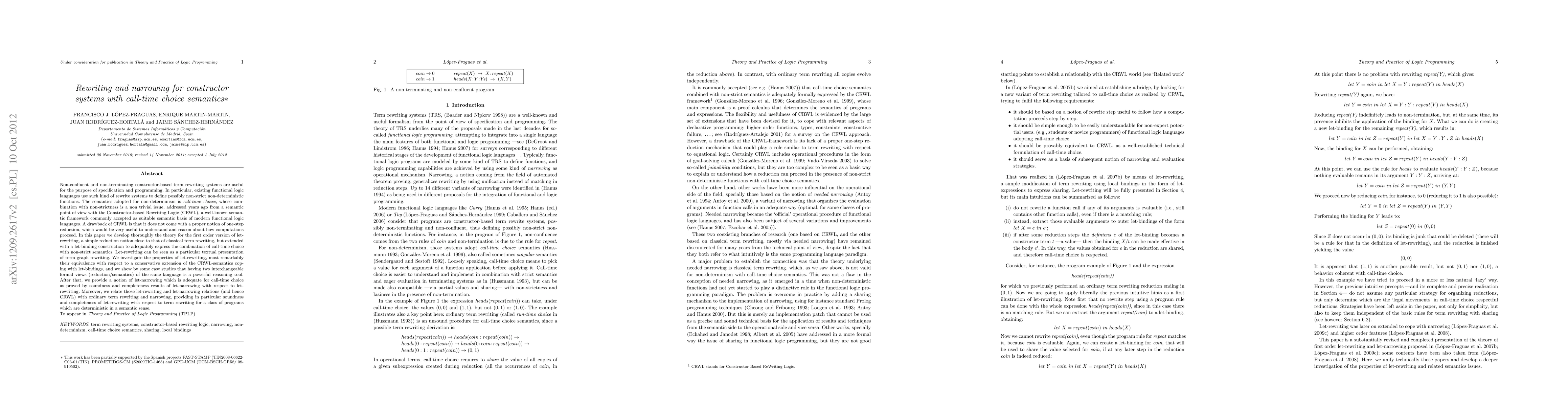 Non-confluent and non-terminating constructor-based term rewrite systems are useful for the purpose of specification and programming. In particular, existing functional logic languages use such kind of rewrite systems to define possibly non-strict non-deterministic functions. The semantics adopted for non-determinism is call-time choice, whose combination with non-strictness is a non trivial issue, addressed years ago from a semantic point of view with the Constructor-based Rewriting Logic (CRWL), a well-known semantic framework commonly accepted as suitable semantic basis of modern functional logic languages. A drawback of CRWL is that it does not come with a proper notion of one-step reduction, which would be very useful to understand and reason about how computations proceed. In this paper we develop thoroughly the theory for the first order version of let-rewriting, a simple reduction notion close to that of classical term rewriting, but extended with a let-binding construction to adequately express the combination of call-time choice with non-strict semantics. Let-rewriting can be seen as a particular textual presentation of term graph rewriting. We investigate the properties of let-rewriting, most remarkably their equivalence with respect to a conservative extension of the CRWL-semantics coping with let-bindings, and we show by some case studies that having two interchangeable formal views (reduction/semantics) of the same language is a powerful reasoning tool. After that, we provide a notion of let-narrowing which is adequate for call-time choice as proved by soundness and completeness results of let-narrowing with respect to let-rewriting. Moreover, we relate those let-rewriting and let-narrowing relations (and hence CRWL) with ordinary term rewriting and narrowing (..) To appear in Theory and Practice of Logic Programming (TPLP).