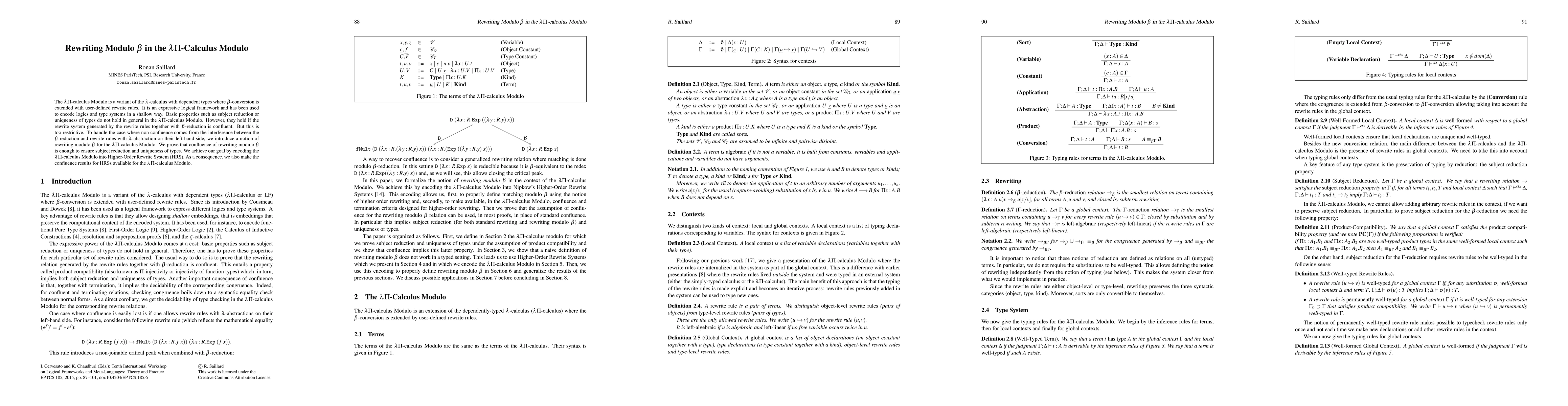 This paper introduces a notion of rewriting modulo beta for the lambda-Pi-calculus Modulo to address non-confluence issues, proving that confluence of rewriting modulo beta ensures subject reduction and type uniqueness. The authors achieve this by encoding the lambda-Pi-calculus Modulo into a Higher-Order Rewrite System, extending confluence results from HRSs to the calculus.