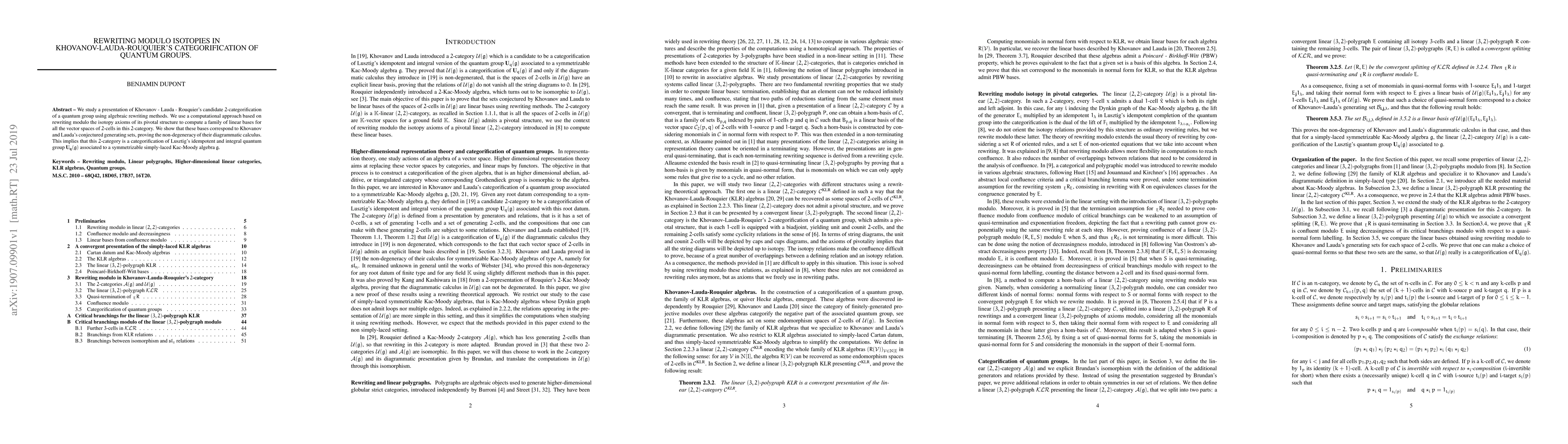 This paper presents a computational approach to verify Khovanov-Lauda-Rouquier's $2$-categorification of quantum groups using algebraic rewriting modulo isotopy axioms. It demonstrates that the resulting linear bases correspond to conjectured generating sets, confirming the non-degeneracy of the diagrammatic calculus and establishing the categorification of Lusztig's quantum group.