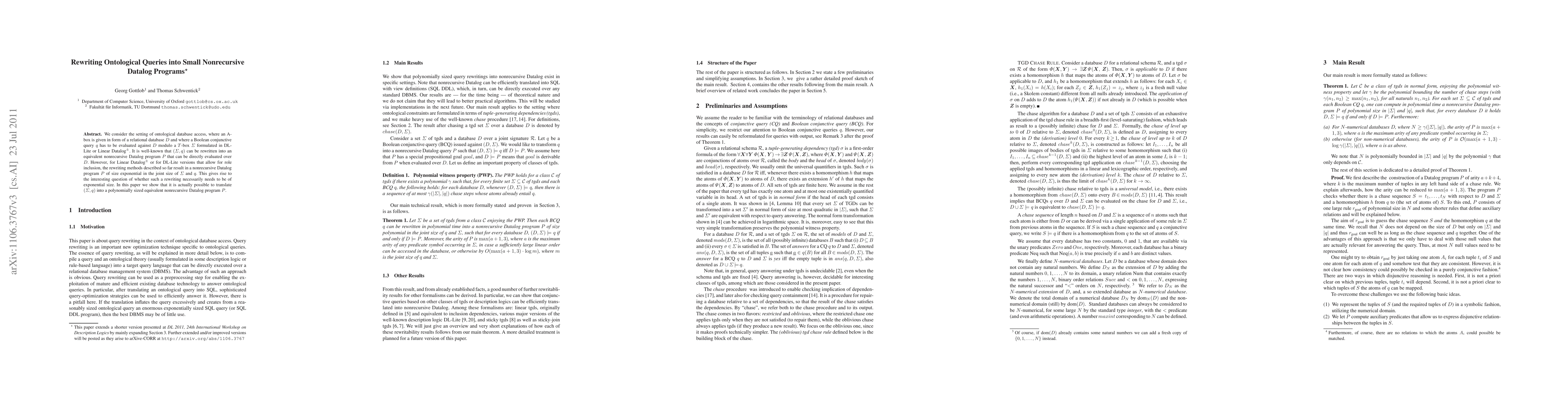 This paper demonstrates that ontological queries (q) and terminological boxes (T) can be rewritten into polynomially sized nonrecursive Datalog programs, addressing the challenge of exponential size growth in previous methods for Linear Datalog and DL-Lite. This advancement facilitates more efficient evaluation of Boolean conjunctive queries against ontological databases.