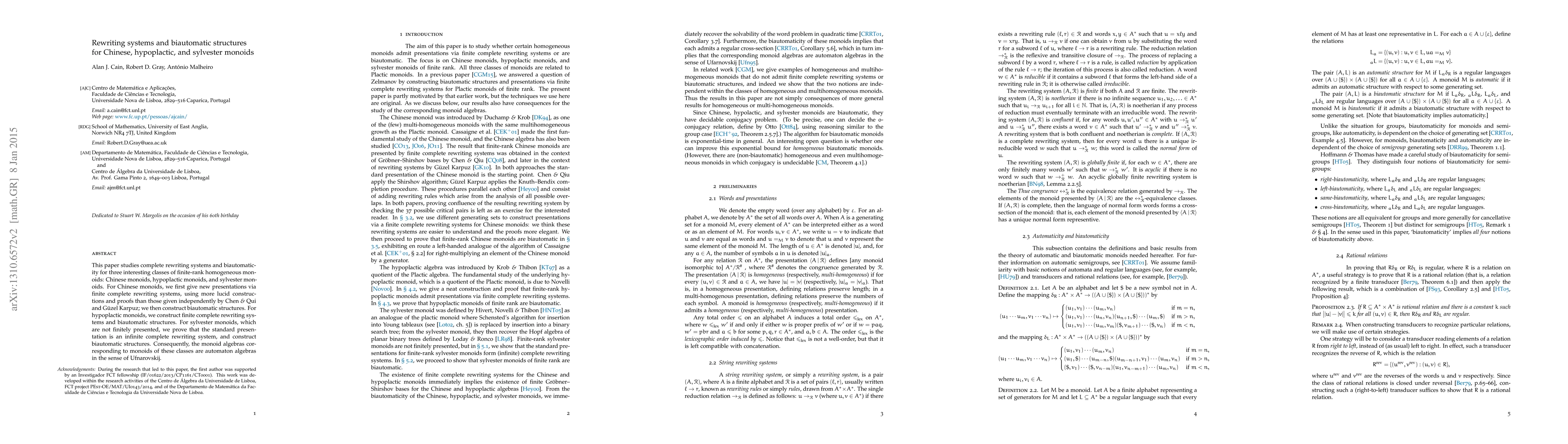 This paper presents new complete rewriting systems and biautomatic structures for Chinese, hypoplactic, and sylvester monoids, providing lucid constructions for Chinese and hypoplactic monoids and proving that sylvester monoids can be represented as infinite rewriting systems. Biautomatic structures are constructed for all three classes.