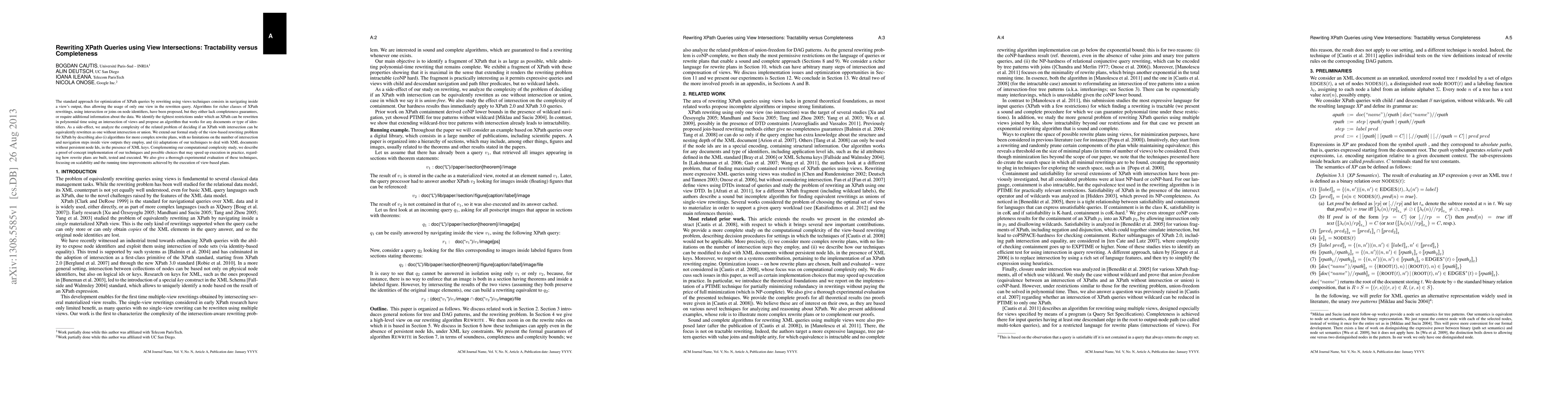 The standard approach for optimization of XPath queries by rewriting using views techniques consists in navigating inside a view's output, thus allowing the usage of only one view in the rewritten query. Algorithms for richer classes of XPath rewritings, using intersection or joins on node identifiers, have been proposed, but they either lack completeness guarantees, or require additional information about the data. We identify the tightest restrictions under which an XPath can be rewritten in polynomial time using an intersection of views and propose an algorithm that works for any documents or type of identifiers. As a side-effect, we analyze the complexity of the related problem of deciding if an XPath with intersection can be equivalently rewritten as one without intersection or union. We extend our formal study of the view-based rewriting problem for XPath by describing also (i) algorithms for more complex rewrite plans, with no limitations on the number of intersection and navigation steps inside view outputs they employ, and (ii) adaptations of our techniques to deal with XML documents without persistent node Ids, in the presence of XML keys. Complementing our computational complexity study, we describe a proof-of-concept implementation of our techniques and possible choices that may speed up execution in practice, regarding how rewrite plans are built, tested and executed. We also give a thorough experimental evaluation of these techniques, focusing on scalability and the running time improvements achieved by the execution of view-based plans.