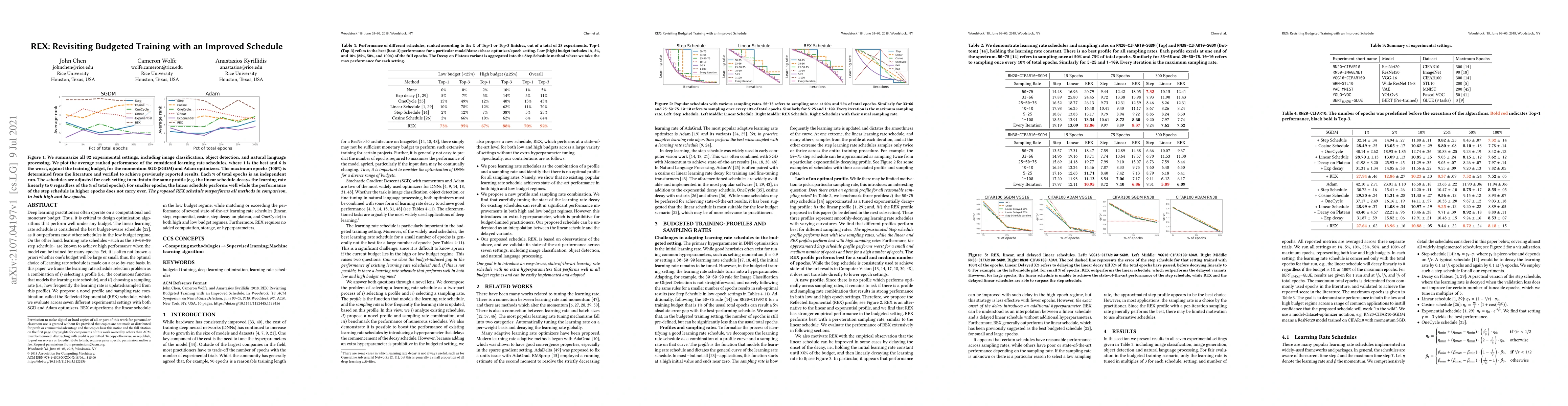 This paper proposes the Reflected Exponential (REX) schedule to optimize deep learning training under budget constraints. REX combines a novel profile and sampling rate to outperform the linear learning rate schedule in low budget scenarios while matching or exceeding the performance of other advanced schedules in both high and low budget regimes without additional computational costs.