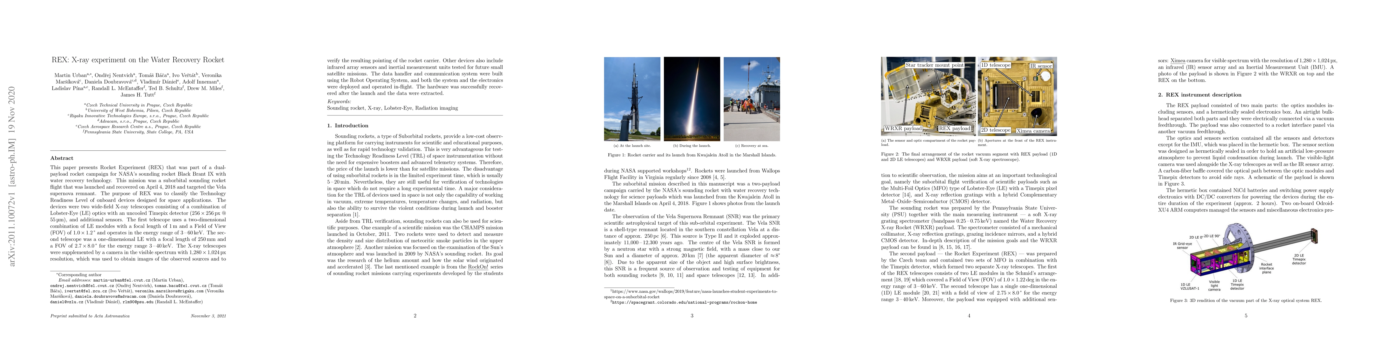 The REX experiment successfully launched on a NASA sounding rocket to test two wide-field X-ray telescopes with water recovery technology, demonstrating the readiness of these devices for space applications.