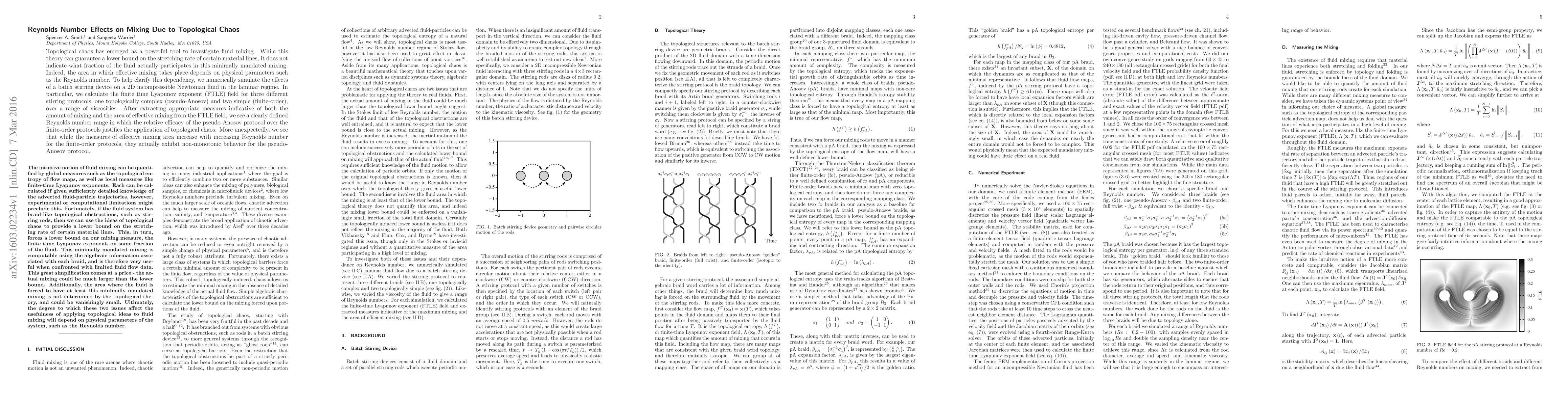 Researchers used numerical simulations to investigate the effect of Reynolds number on mixing in fluids, finding that topological chaos improves mixing efficacy at high Reynolds numbers.