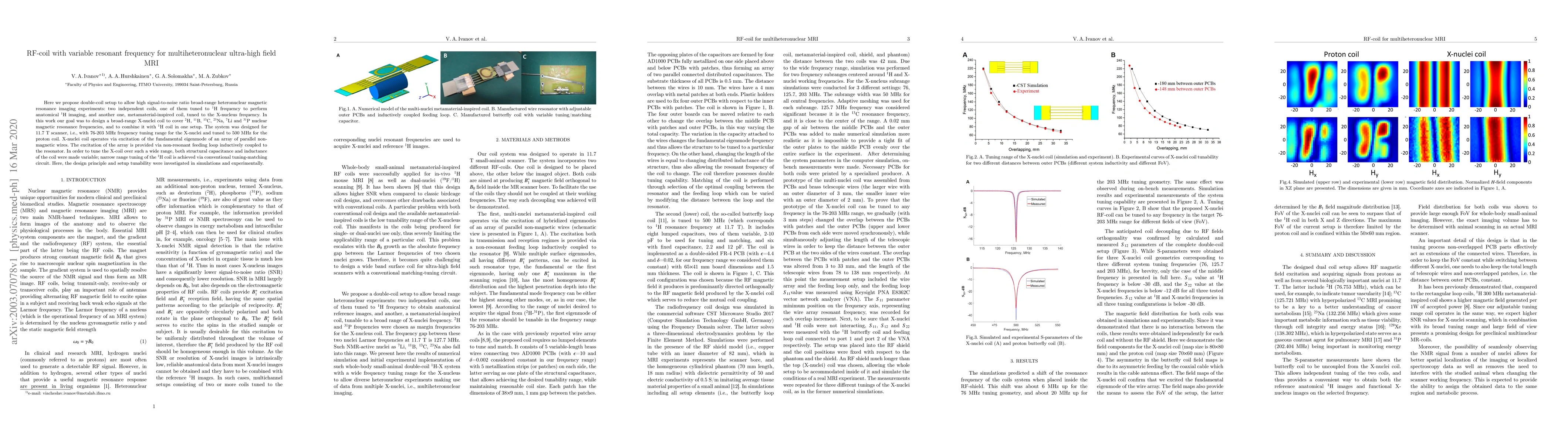 This paper proposes a dual-coil setup for multiheteronuclear MRI at ultra-high fields, combining a proton coil for anatomical imaging with a metamaterial-inspired coil for X-nuclei (including $^{2}$H, $^{11}$B, $^{13}$C, $^{23}$Na, $^{7}$Li, $^{31}$P) frequencies. The X-nuclei coil uses variable capacitance and inductance for broad-range tuning and operates via an array of parallel non-magnetic wires.