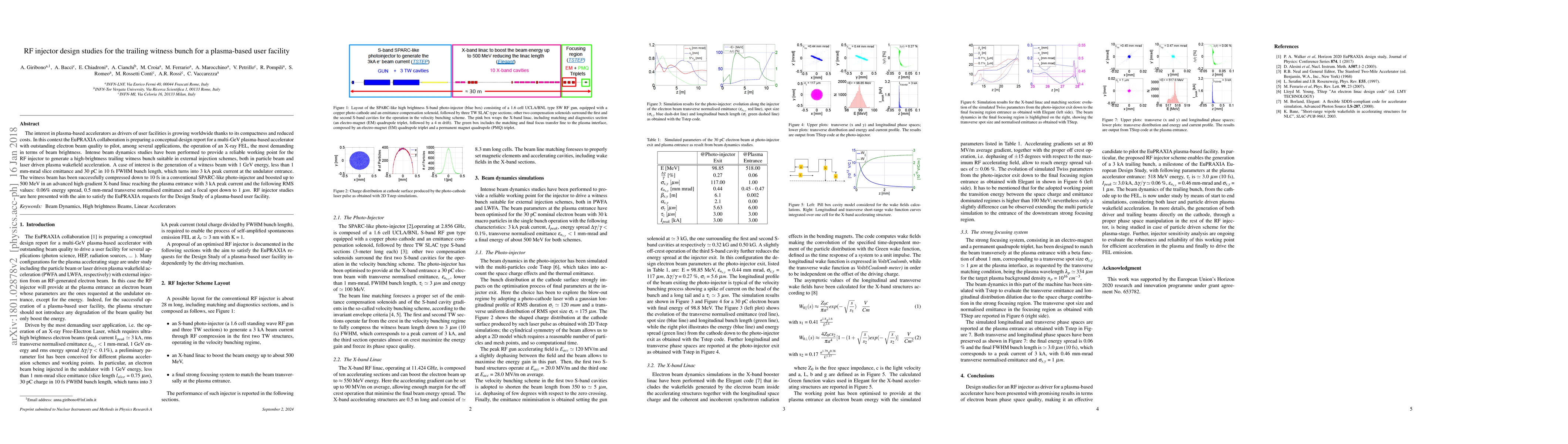 This paper discusses RF injector design studies for generating a high-brightness trailing witness bunch in plasma-based accelerators, focusing on achieving 1 GeV energy, 1 mm-mrad emittance, and 30 pC in 10 fs bunch length. The witness beam is successfully compressed and boosted to meet stringent requirements for an X-ray FEL user facility.