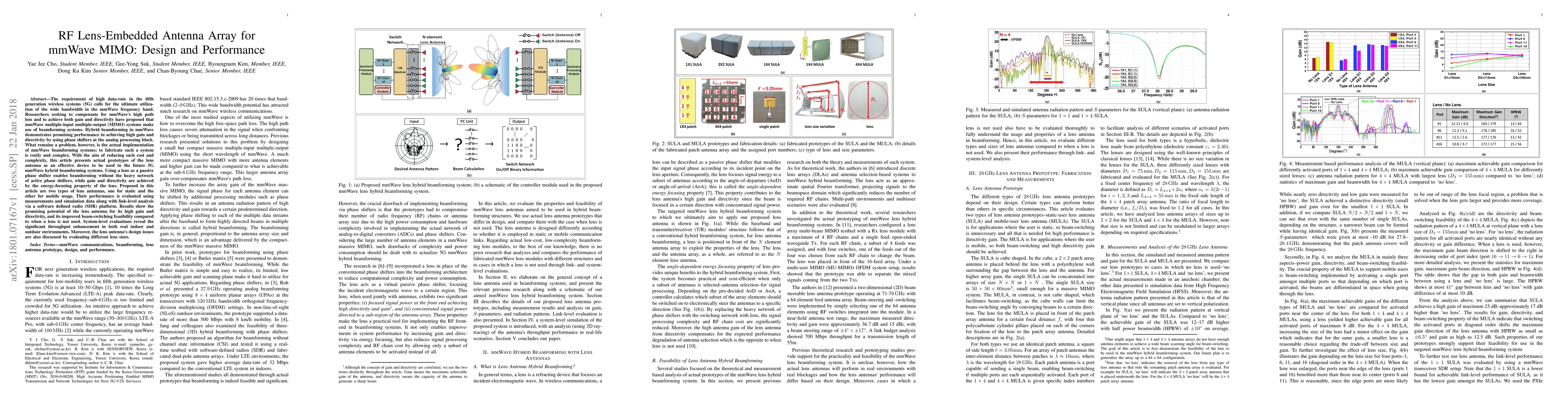 This paper presents prototypes of RF lens-embedded antenna arrays for mmWave MIMO in 5G systems, aiming to reduce the cost and complexity of hybrid beamforming. The lens antennas, designed for both static and mobile use, demonstrate high gain, directivity, and improved beam-switching feasibility, leading to significant throughput enhancements in various environments.
