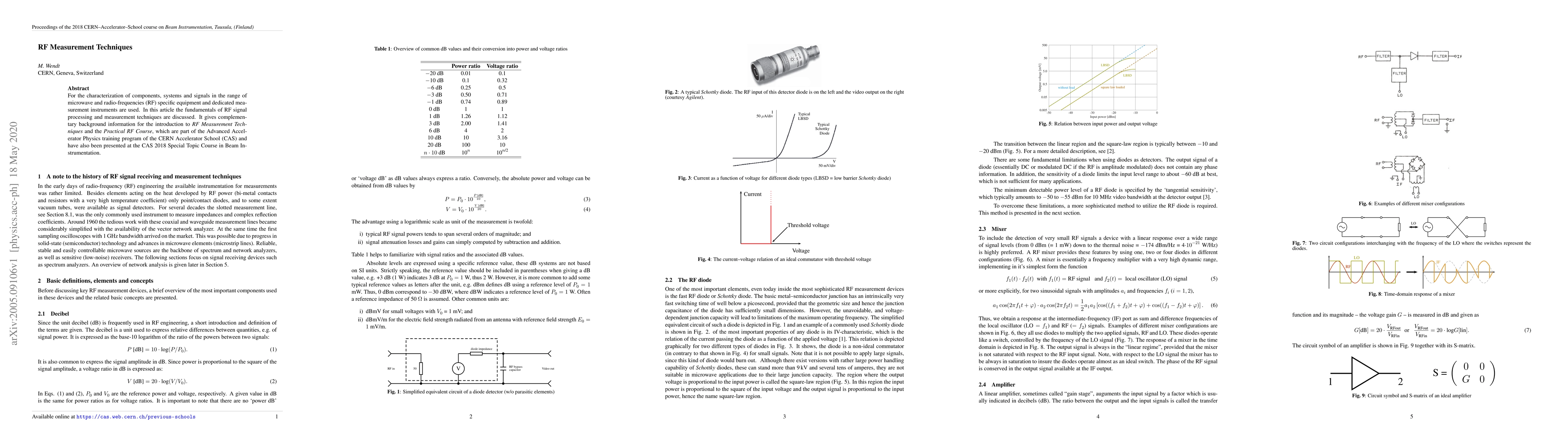 For the characterization of components, systems and signals in the range of microwave and radio-frequencies (RF) specific equipment and dedicated measurement instruments are used. In this article the fundamentals of RF signal processing and measurement techniques are discussed. It gives complementary background information for the introduction to RF Measurement Techniques and the Practical RF Course, which are part of the Advanced Accelerator Physics training program of the CERN Accelerator School (CAS) and have also been presented at the CAS 2018 Special Topic Course in Beam Instrumentation.