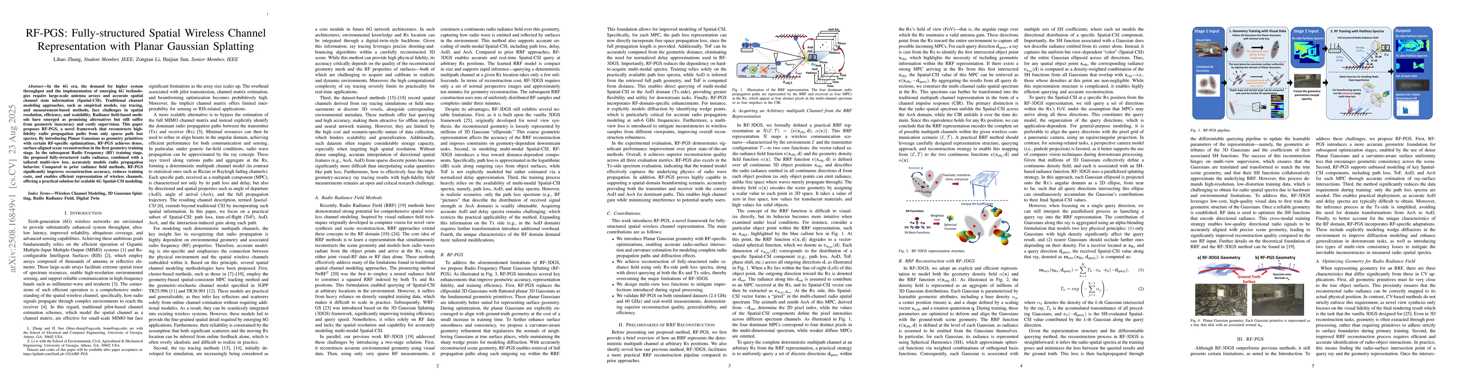 In the 6G era, the demand for higher system throughput and the implementation of emerging 6G technologies require large-scale antenna arrays and accurate spatial channel state information (Spatial-CSI). Traditional channel modeling approaches, such as empirical models, ray tracing, and measurement-based methods, face challenges in spatial resolution, efficiency, and scalability. Radiance field-based methods have emerged as promising alternatives but still suffer from geometric inaccuracy and costly supervision. This paper proposes RF-PGS, a novel framework that reconstructs high-fidelity radio propagation paths from only sparse path loss spectra. By introducing Planar Gaussians as geometry primitives with certain RF-specific optimizations, RF-PGS achieves dense, surface-aligned scene reconstruction in the first geometry training stage. In the subsequent Radio Frequency (RF) training stage, the proposed fully-structured radio radiance, combined with a tailored multi-view loss, accurately models radio propagation behavior. Compared to prior radiance field methods, RF-PGS significantly improves reconstruction accuracy, reduces training costs, and enables efficient representation of wireless channels, offering a practical solution for scalable 6G Spatial-CSI modeling.
