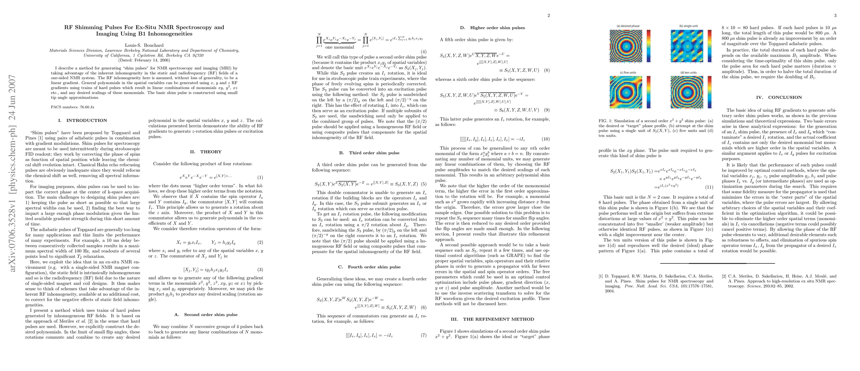 This paper proposes a method for creating "shim pulses" in NMR spectroscopy and MRI by exploiting the inherent inhomogeneities in the static and RF fields, specifically focusing on linear RF field gradients. The method generates general polynomial spatial functions using RF gradients and hard pulses, enabling precise control over NMR signals.