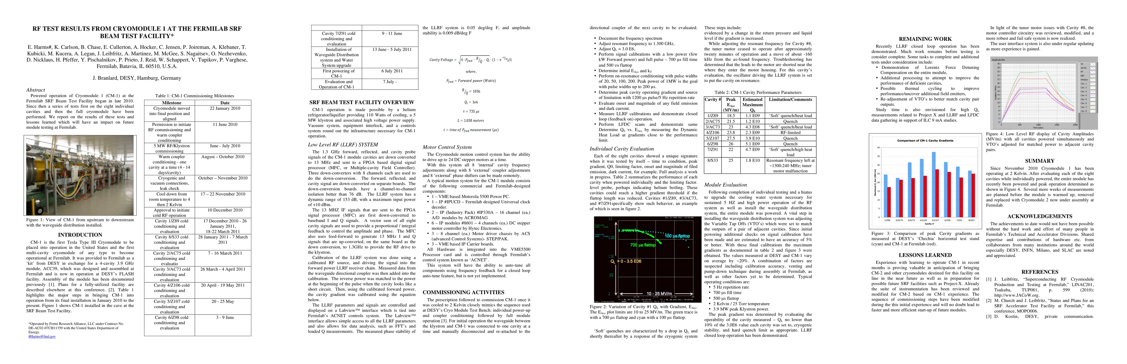 The paper presents detailed RF test results, commissioning activities, and lessons learned from operating Cryomodule 1 at the Fermilab SRF Beam Test Facility, including the implementation and calibration of the LLRF system and motor control system.