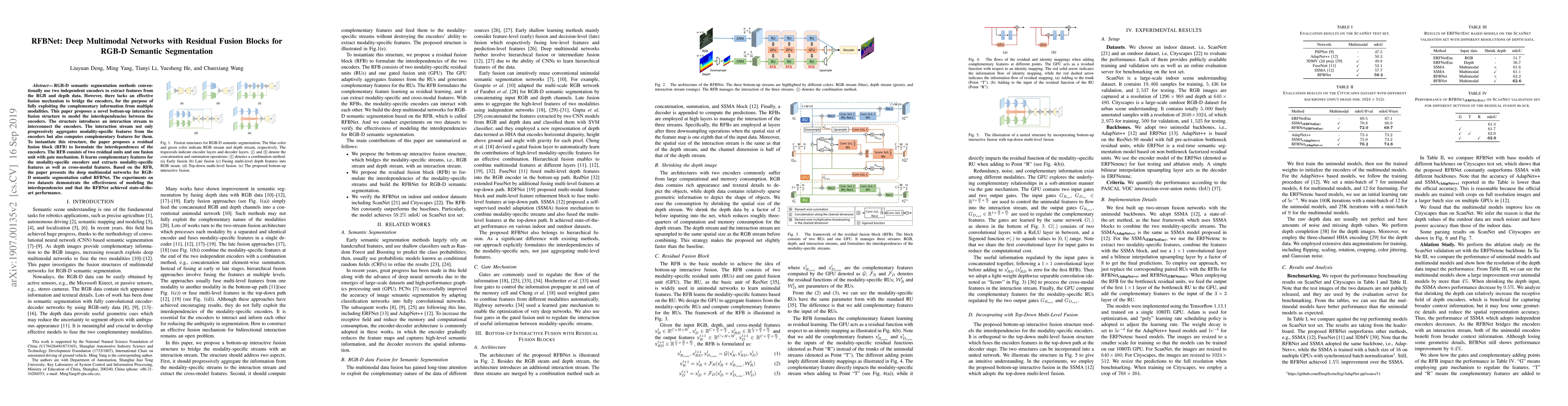 RFBNet introduces a novel bottom-up interactive fusion structure with residual fusion blocks to model interdependencies between RGB and depth encoders in semantic segmentation, achieving state-of-the-art performance. The proposed RFB facilitates complementary feature computation and progressive feature aggregation across modalities.