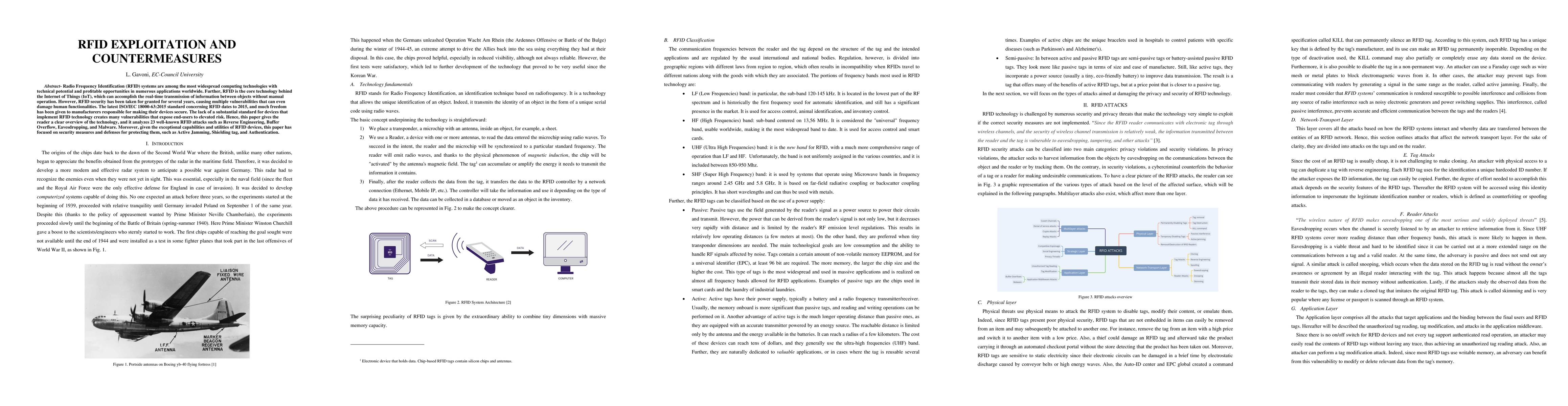 This paper provides an in-depth analysis of the vulnerabilities in RFID systems, detailing 23 well-known attack methods including Reverse Engineering and Eavesdropping, and proposes effective countermeasures such as Active Jamming and Authentication to enhance RFID security.