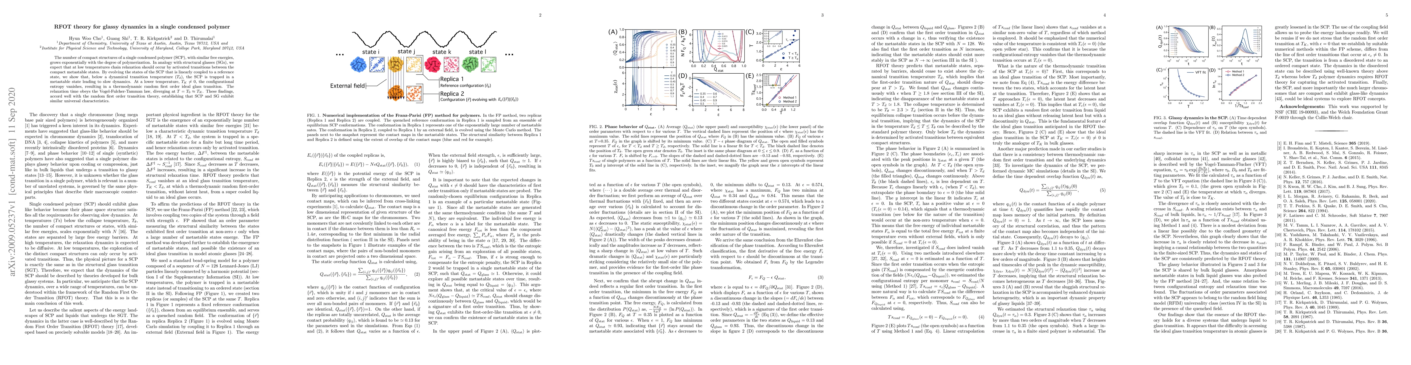 The number of compact structures of a single condensed polymer (SCP), with similar free energies, grows exponentially with the degree of polymerization. In analogy with structural glasses (SGs), we expect that at low temperatures chain relaxation should occur by activated transitions between the compact metastable states. By evolving the states of the SCP that is linearly coupled to a reference state, we show that, below a dynamical transition temperature ($T_d$), the SCP is trapped in a metastable state leading to slow dynamics. At a lower temperature, $T_K \ne 0$, the configurational entropy vanishes, resulting in a thermodynamic random first order ideal glass transition. The relaxation time obeys the Vogel-Fulcher-Tamman law, diverging at $T=T_0 \approx T_K$. These findings, accord well with the random first order transition theory, establishing that SCP and SG exhibit similar universal characteristics.