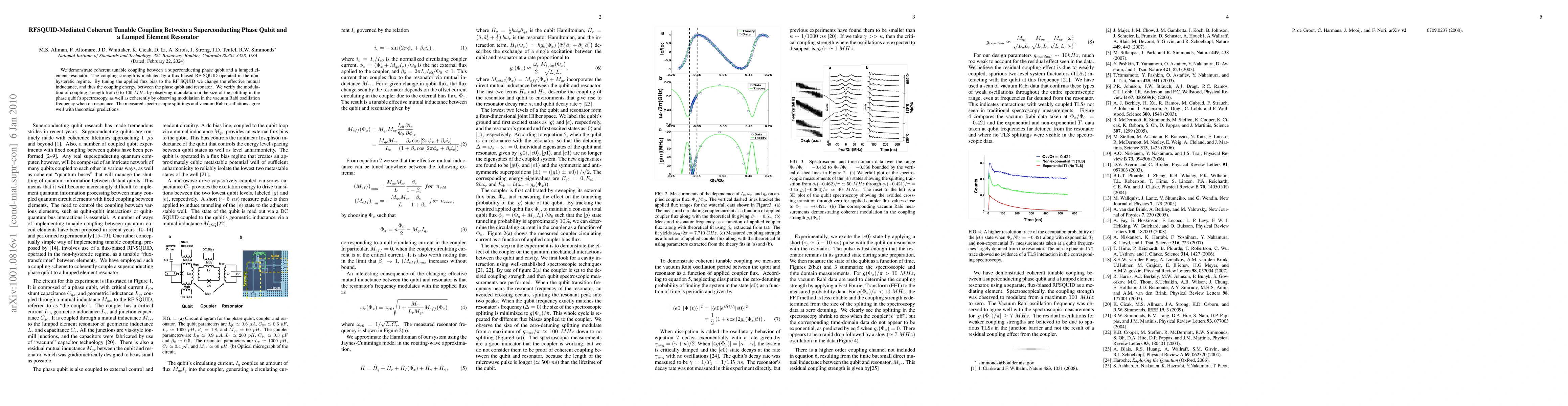 This paper demonstrates coherent tunable coupling between a superconducting phase qubit and a lumped element resonator via a flux-biased RF SQUID, achieving modulation of coupling strength from 0 to 100 MHz. Theoretical predictions align well with observed spectroscopic splittings and vacuum Rabi oscillations.