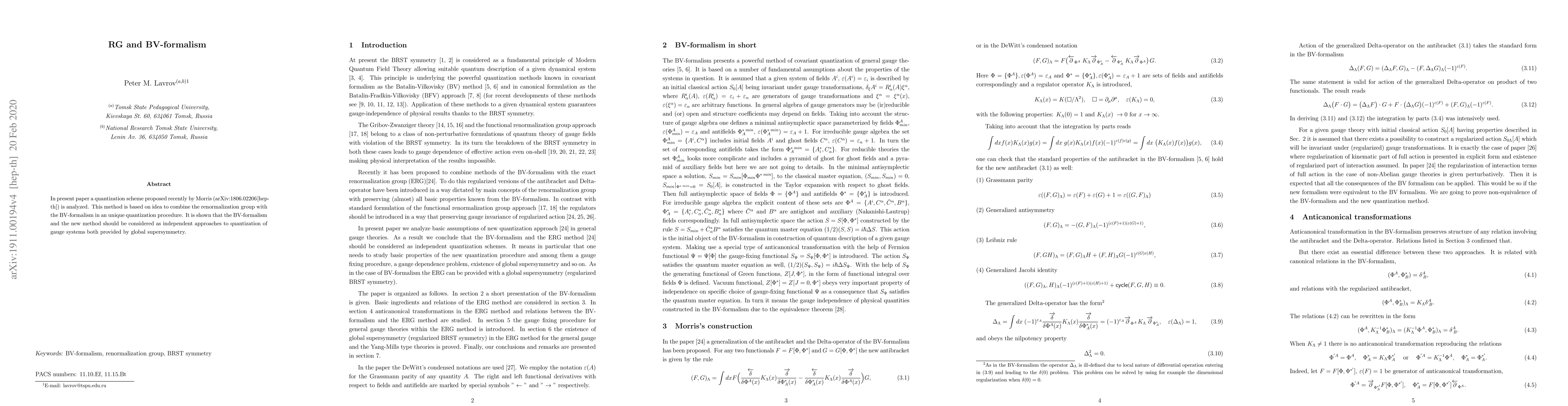 This paper analyzes Morris's novel quantization scheme combining renormalization group methods with the BV-formalism for gauge systems with global supersymmetry, demonstrating the independent nature of both approaches.