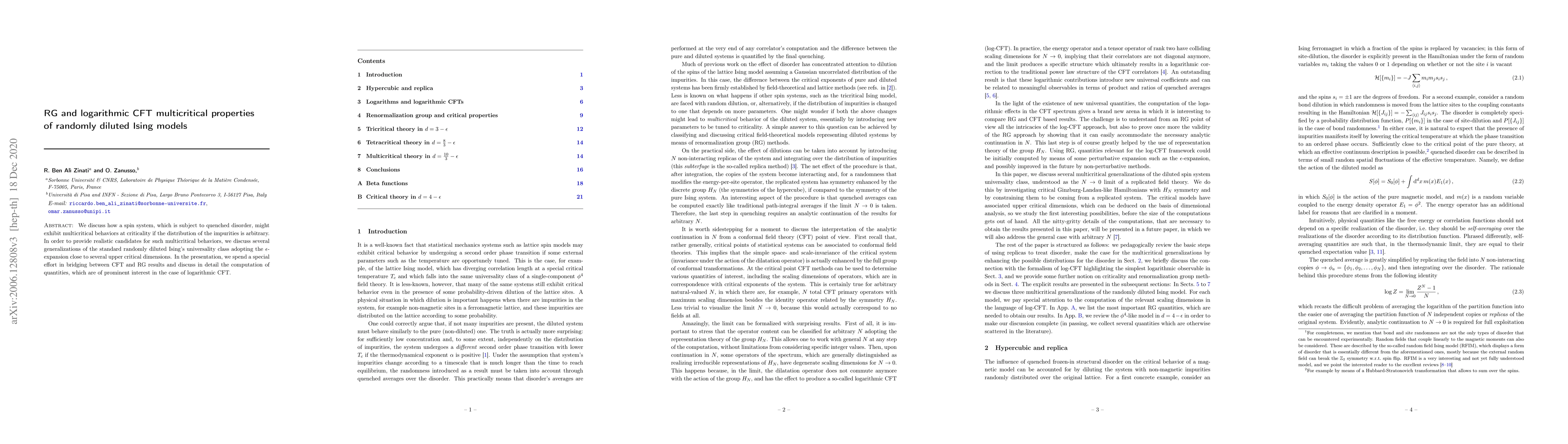 This paper investigates how randomly diluted Ising models can exhibit multicritical behaviors at criticality with arbitrary impurity distributions. It explores the connection between conformal field theory (CFT) and renormalization group (RG) results to identify potential multicritical behaviors in logarithmic CFT.