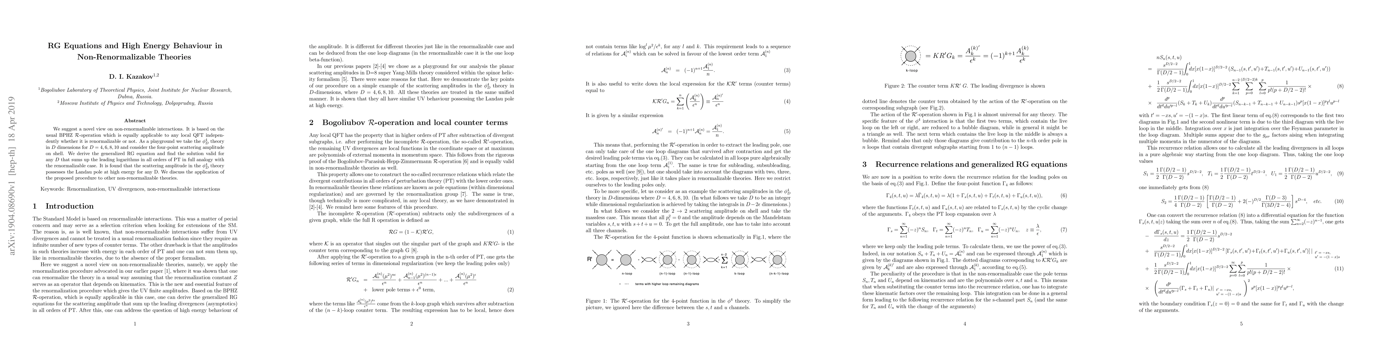 We suggest a novel view on non-renormalizable interactions. It is based on the usual BPHZ R-operation which is equally applicable to any local QFT independently whether it is renormalizable or not. As a playground we take the phi^4_D theory in D dimensions for D=4,6,8,10 and consider the four-point scattering amplitude on shell. We derive the generalized RG equation and find the solution valid for any D that sums up the leading logarithms in all orders of PT in full analogy with the renormalizable case. It is found that the scattering amplitude in the phi^4_D theory possesses the Landau pole at high energy for any D. We discuss the application of the proposed procedure to other non-renormalizable theories.