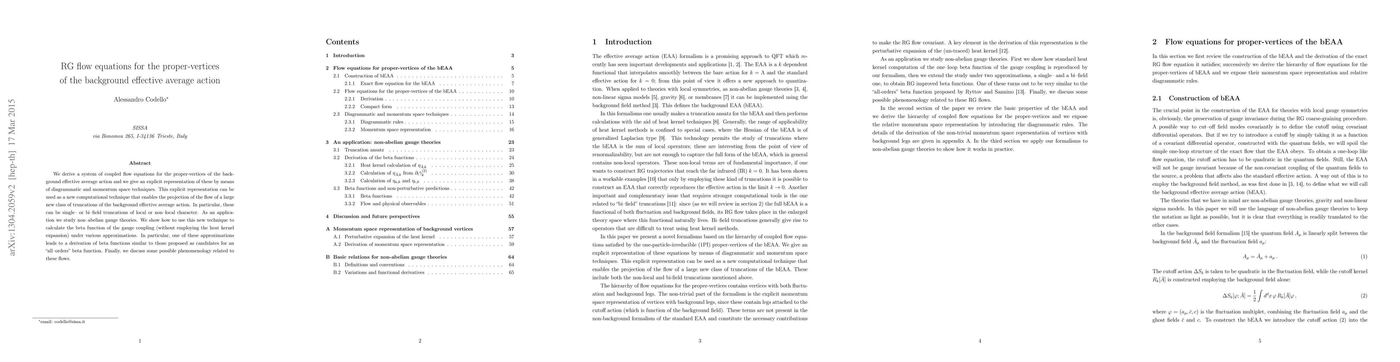We derive a system of coupled flow equations for the proper-vertices of the background effective average action and we give an explicit representation of these by means of diagrammatic and momentum space techniques. This explicit representation can be used as a new computational technique that enables the projection of the flow of a large new class of truncations of the background effective average action. In particular, these can be single- or bi-field truncations of local or non-local character. As an application we study non-abelian gauge theories. We show how to use this new technique to calculate the beta function of the gauge coupling (without employing the heat kernel expansion) under various approximations. In particular, one of these approximations leads to a derivation of beta functions similar to those proposed as candidates for an "all-orders" beta function. Finally, we discuss some possible phenomenology related to these flows.