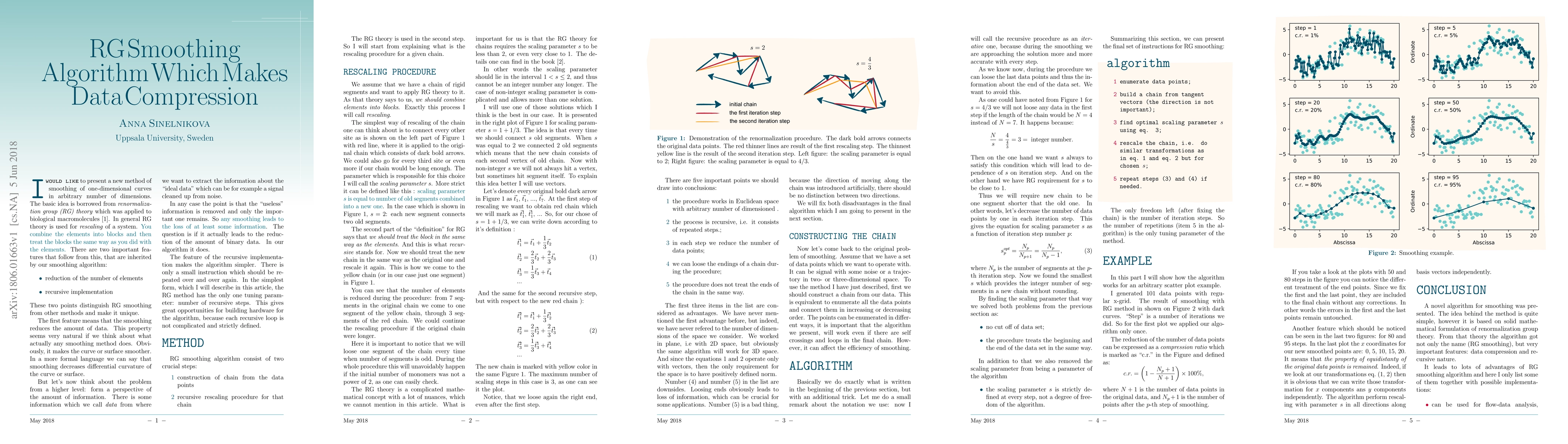 I describe a new method for smoothing a one-dimensional curve in Euclidian space with an arbitrary number of dimensions. The basic idea is borrowed from renormalization group theory which previously was applied to biological macromolecules. There are two crucial differences from other smoothing methods which make the algorithm unique: data compression and recursive implementation. One of the simplest forms of the method that is described in this article has only one free parameter - the number of iterative steps. This means that hardware implementation should be relatively easy because each loop is simple and strictly defined. The method could be beneficially applied to pattern recognition and data compression in future studies.