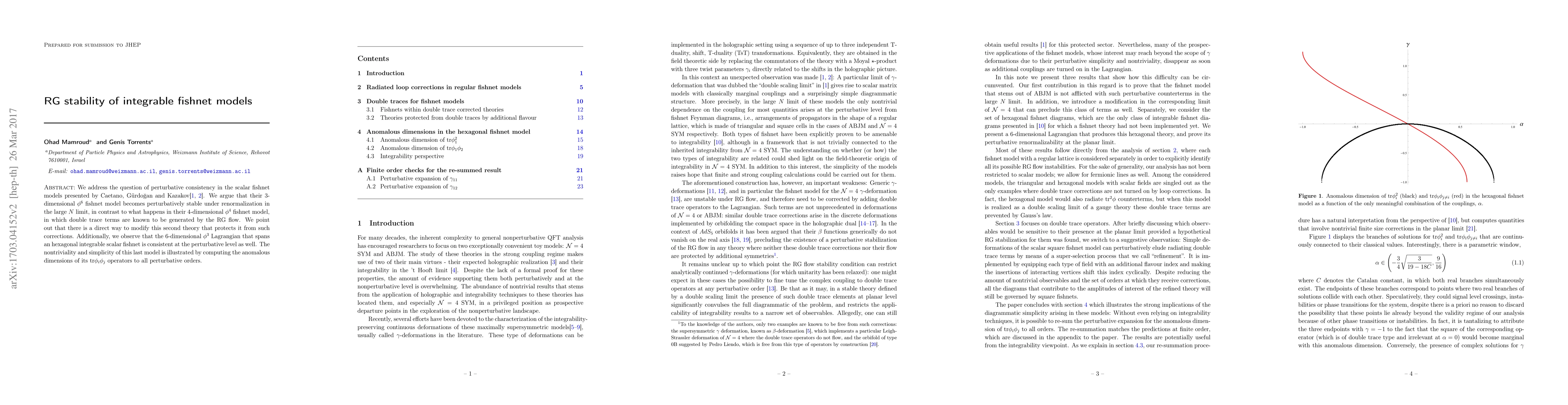 We address the question of perturbative consistency in the scalar fishnet models presented by Caetano, Gurdogan and Kazakov\cite{Gurdogan:2015csr, Caetano:2016ydc}. We argue that their 3-dimensional $\phi^{6}$ fishnet model becomes perturbatively stable under renormalization in the large $N$ limit, in contrast to what happens in their 4-dimensional $\phi^{4}$ fishnet model, in which double trace terms are known to be generated by the RG flow. We point out that there is a direct way to modify this second theory that protects it from such corrections. Additionally, we observe that the 6-dimensional $\phi^{3}$ Lagrangian that spans an hexagonal integrable scalar fishnet is consistent at the perturbative level as well. The nontriviality and simplicity of this last model is illustrated by computing the anomalous dimensions of its $\text{tr}\phi_i \phi_j$ operators to all perturbative orders.