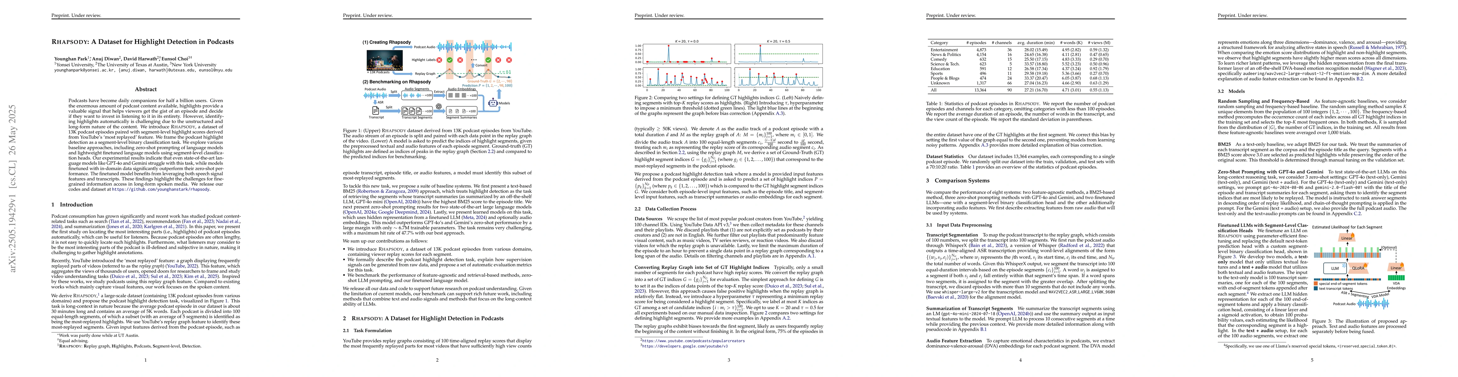 Researchers created a dataset called Rhapsody to help detect highlights in podcasts, finding that finetuned language models outperform zero-shot approaches despite struggling with the task even for state-of-the-art models like GPT-4o.