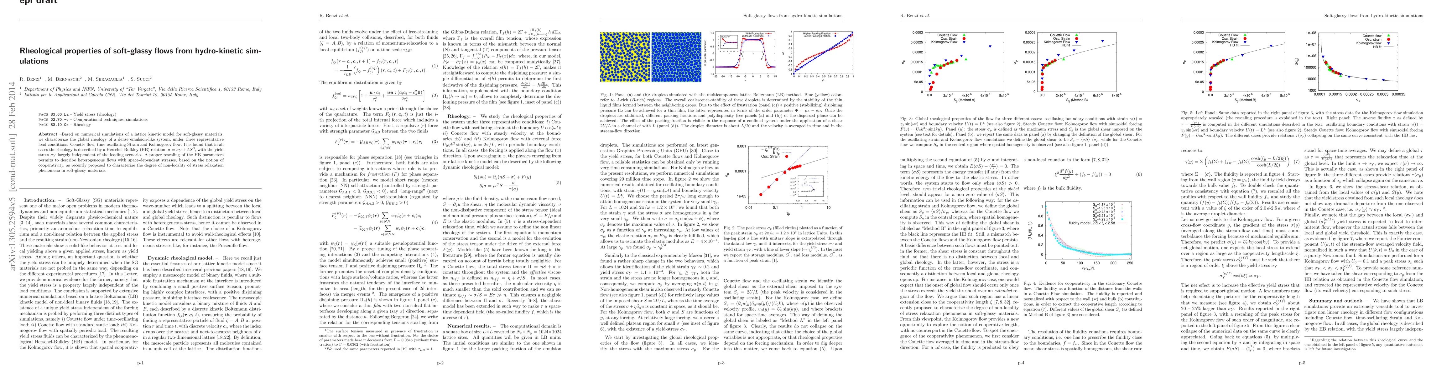 This paper uses lattice kinetic simulations to study the rheological properties of soft-glassy materials under different load conditions, finding that their rheology follows a Herschel-Bulkley relation with a largely yield stress independent of the loading scenario. The study also introduces a rescaling method to describe heterogeneous flows based on cooperativity.