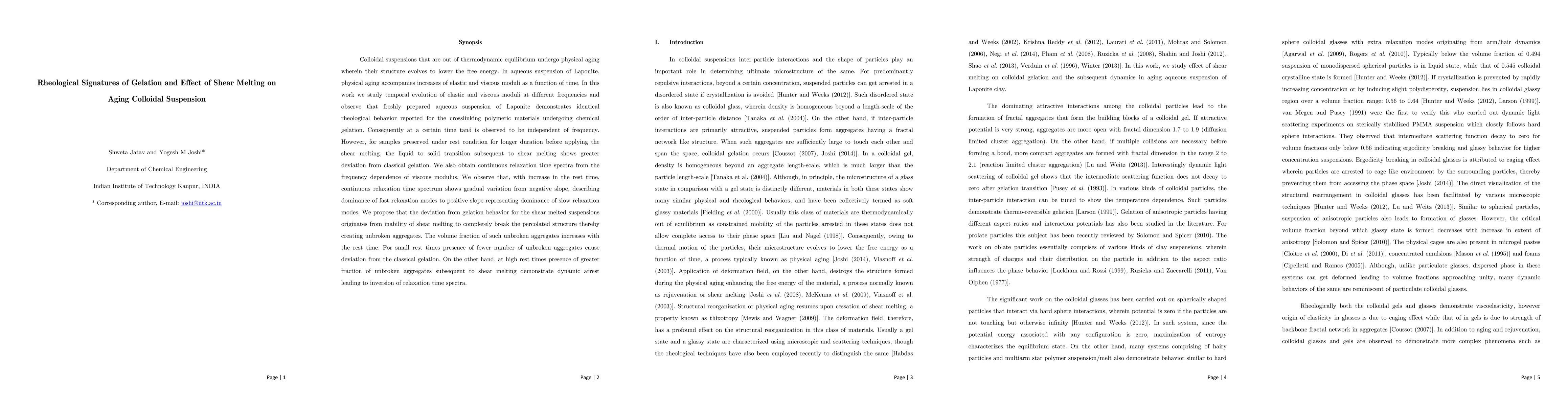 Colloidal suspensions that are out of thermodynamic equilibrium undergo physical aging wherein their structure evolves to lower the free energy. In aqueous suspension of Laponite, physical aging accompanies increases of elastic and viscous moduli as a function of time. In this work we study temporal evolution of elastic and viscous moduli at different frequencies and observe that freshly prepared aqueous suspension of Laponite demonstrates identical rheological behavior reported for the crosslinking polymeric materials undergoing chemical gelation. Consequently at a certain time tan{\delta} is observed to be independent of frequency. However, for samples preserved under rest condition for longer duration before applying the shear melting, the liquid to solid transition subsequent to shear melting shows greater deviation from classical gelation. We also obtain continuous relaxation time spectra from the frequency dependence of viscous modulus. We observe that, with increase in the rest time, continuous relaxation time spectrum shows gradual variation from negative slope, describing dominance of fast relaxation modes to positive slope representing dominance of slow relaxation modes. We propose that the deviation from gelation behavior for the shear melted suspensions originates from inability of shear melting to completely break the percolated structure thereby creating unbroken aggregates. The volume fraction of such unbroken aggregates increases with the rest time. For small rest times presence of fewer number of unbroken aggregates cause deviation from the classical gelation. On the other hand, at high rest times presence of greater fraction of unbroken aggregates subsequent to shear melting demonstrate dynamic arrest leading to inversion of relaxation time spectra.