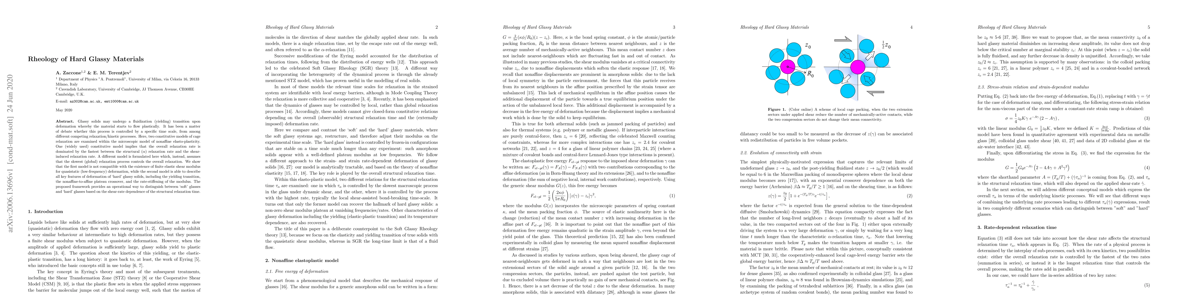 Glassy solids may undergo a fluidization (yielding) transition upon deformation whereby the material starts to flow plastically. It has been a matter of debate whether this process is controlled by a specific time scale, from among different competing relaxation/kinetic processes. Here, two constitutive models of cage relaxation are examined within the microscopic model of nonaffine elasto-plasticity. One (widely used) constitutive model implies that the overall relaxation rate is dominated by the fastest between the structural ($\alpha$) relaxation rate and the shear-induced relaxation rate. A different model is formulated here which, instead, assumes that the slowest (global) relaxation process controls the overall relaxation. We show that the first model is not compatible with the existence of finite elastic shear modulus for quasistatic (low-frequency) deformation, while the second model is able to describe all key features of deformation of `hard' glassy solids, including the yielding transition, the nonaffine-to-affine plateau crossover, and the rate-stiffening of the modulus. The proposed framework provides an operational way to distinguish between `soft' glasses and `hard' glasses based on the shear-rate dependence of the structural relaxation time.