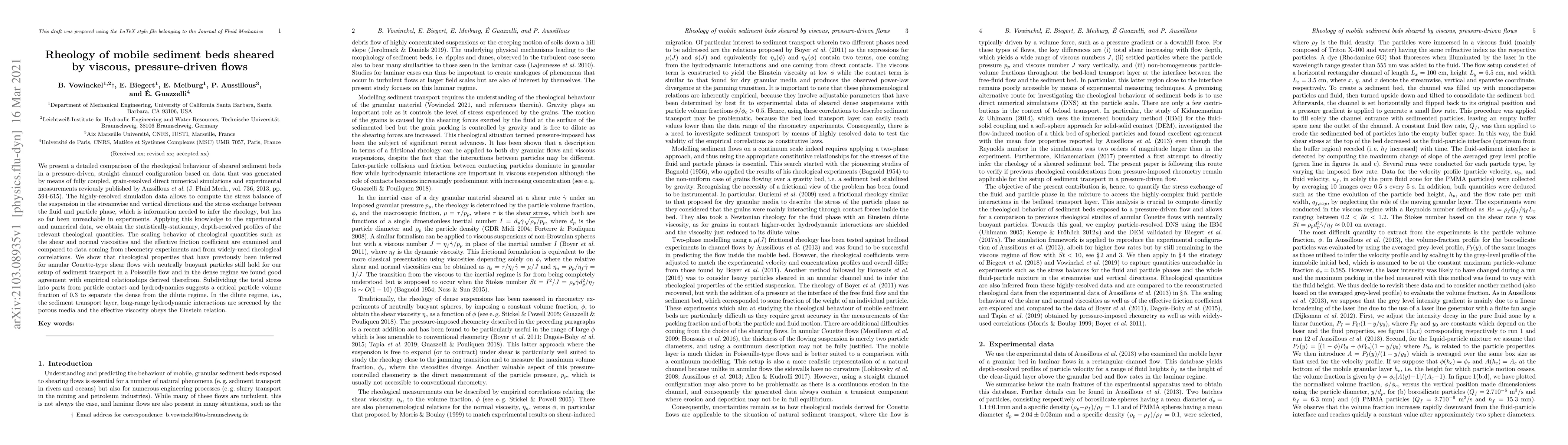 This paper compares the rheological behavior of sheared sediment beds in pressure-driven flows using high-resolution simulations and experimental data. It reveals statistically-stationary depth-resolved profiles and scaling behaviors of rheological quantities, showing good agreement with empirical relationships and identifying a critical particle volume fraction of 0.3 to distinguish dense from dilute regimes.